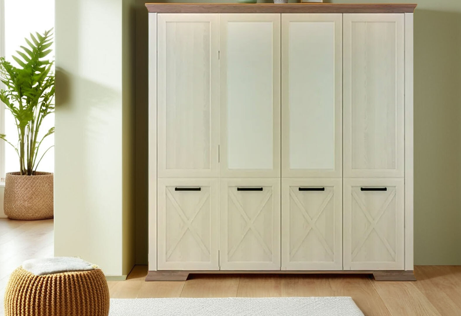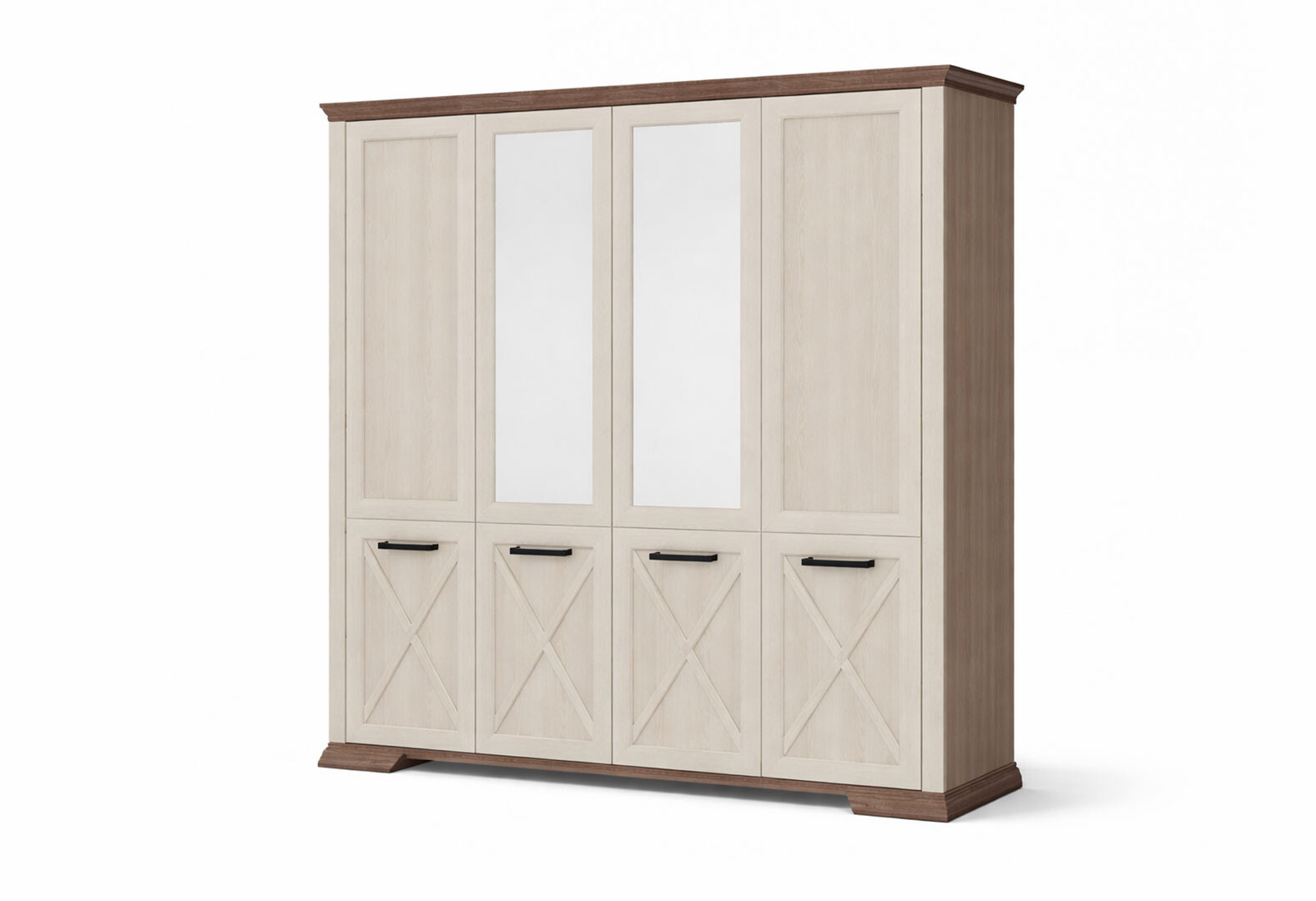 - Шкаф Gerbor холдинг Марсель 4-дверный с зеркалом 216 см Ясень снежный/Дуб сонома трюфель