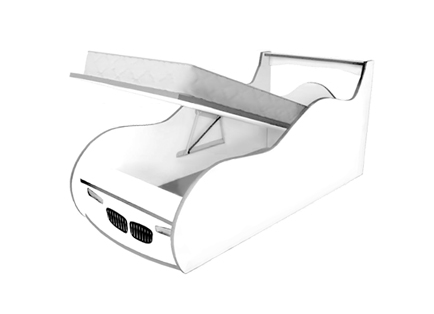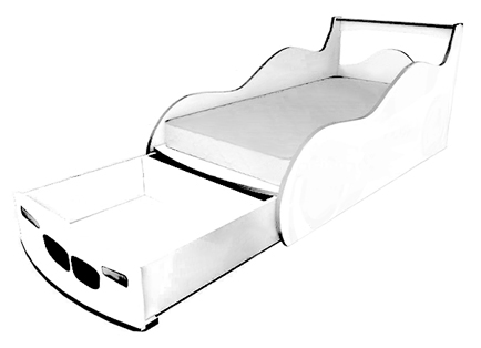 Серия Форсаж включая полное, тотальное декорирования, методом сплошной наклейки рисунка по всей поверхности кровати и дополнительной наклейки защитного слоя ламинированного покрытия, который защищает рисунок от физических повреждений. Плавные изогнутые формы бортиков оказывают оригинальности внешнему виду, защищают от возможных падений во время сна и полностью безопасными, благодаря отсутствию острых углов.