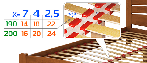Красным цветом выделено количество ламелей на одно спальное место !