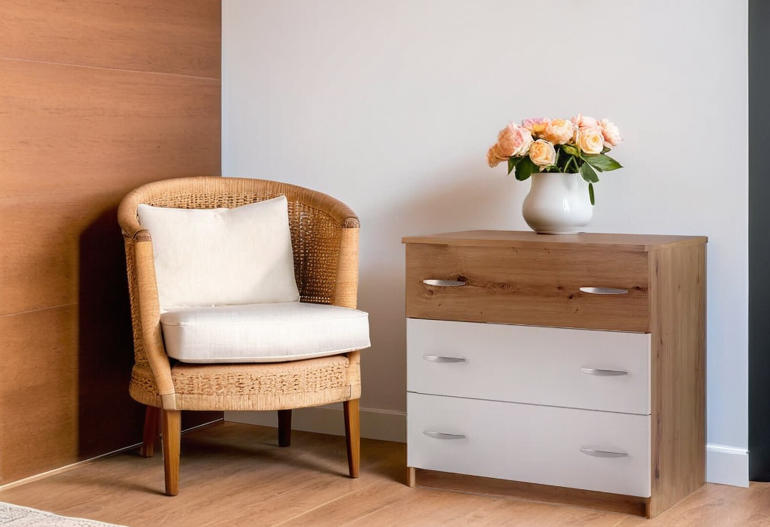 Комод Svit Mebliv Ким New с 3 ящиками 73 см Дуб артизан/Белый