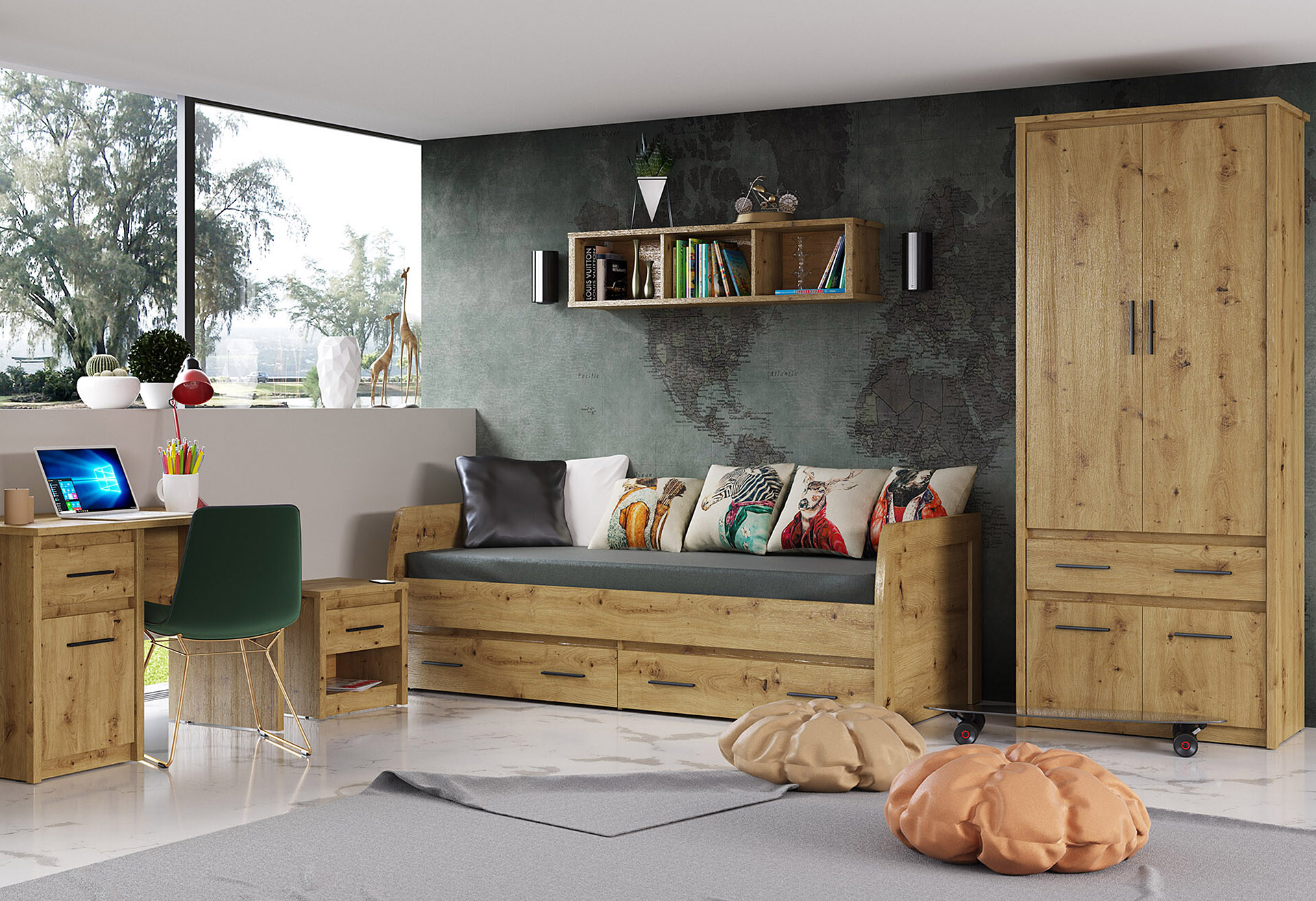 Кровать VMV holding Айсон 90х200 см с ящиками, дуб артизан
