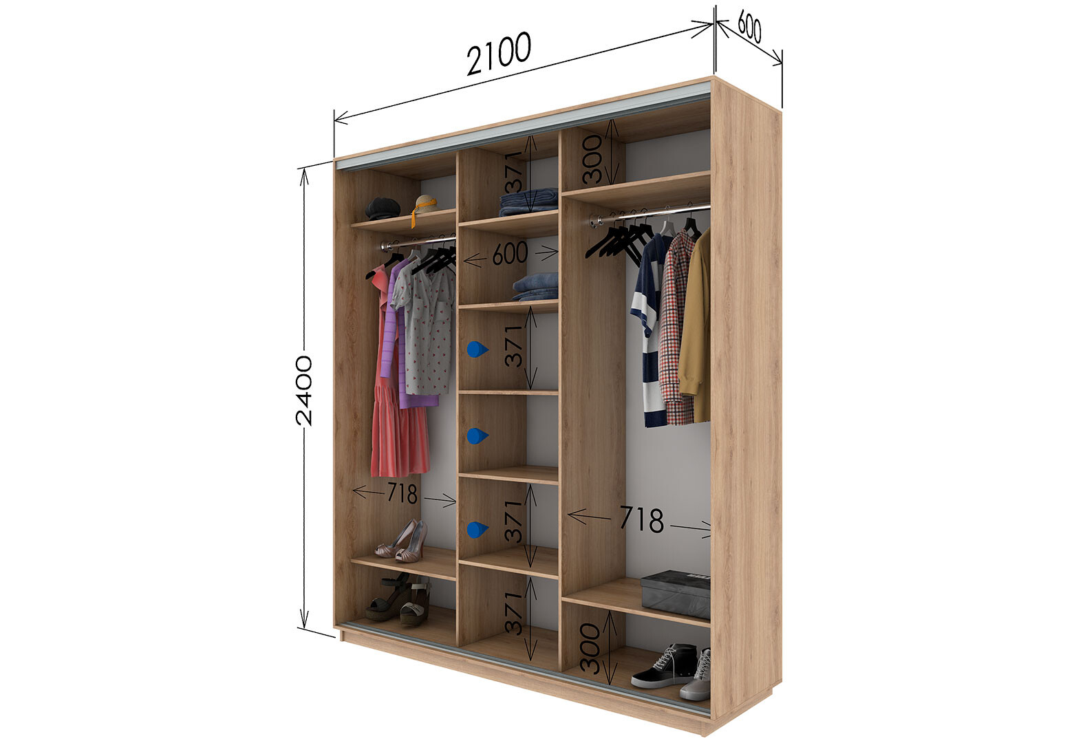 - Шкаф-купе Garant 3-дверный 210x240x60 см
