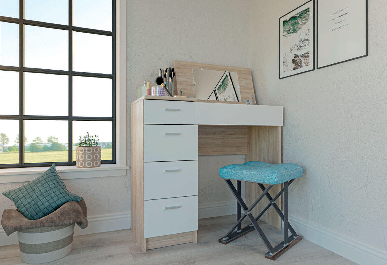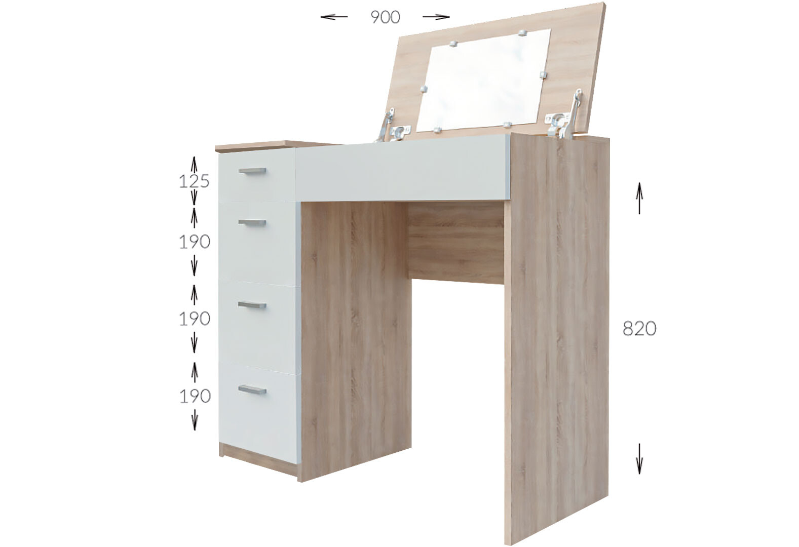Изображение 4 - Стол туалетный Garant Шарм с 4 ящиками и зеркалом 90 см Дуб сонома / Нимфея альба