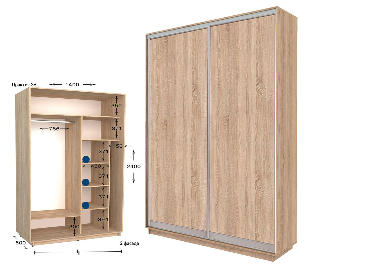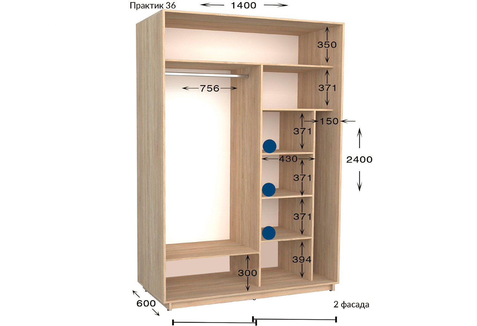 - Шкаф-купе Garant Практик №36 2-дверный 140 см