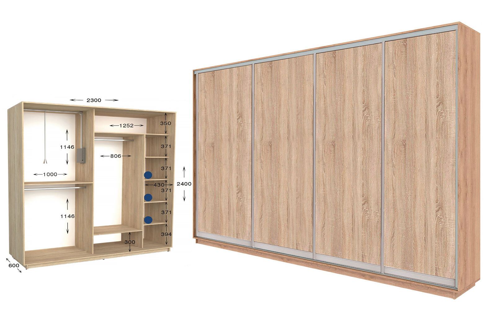 Шкаф-купе Garant Практик №108/4 4-дверный 230 см