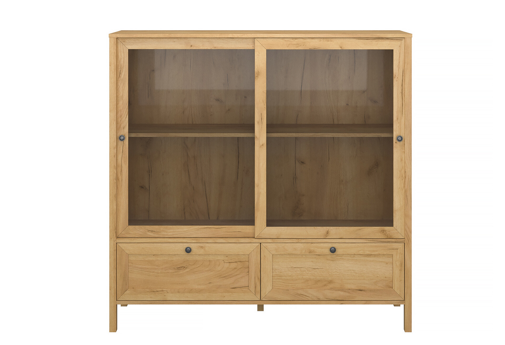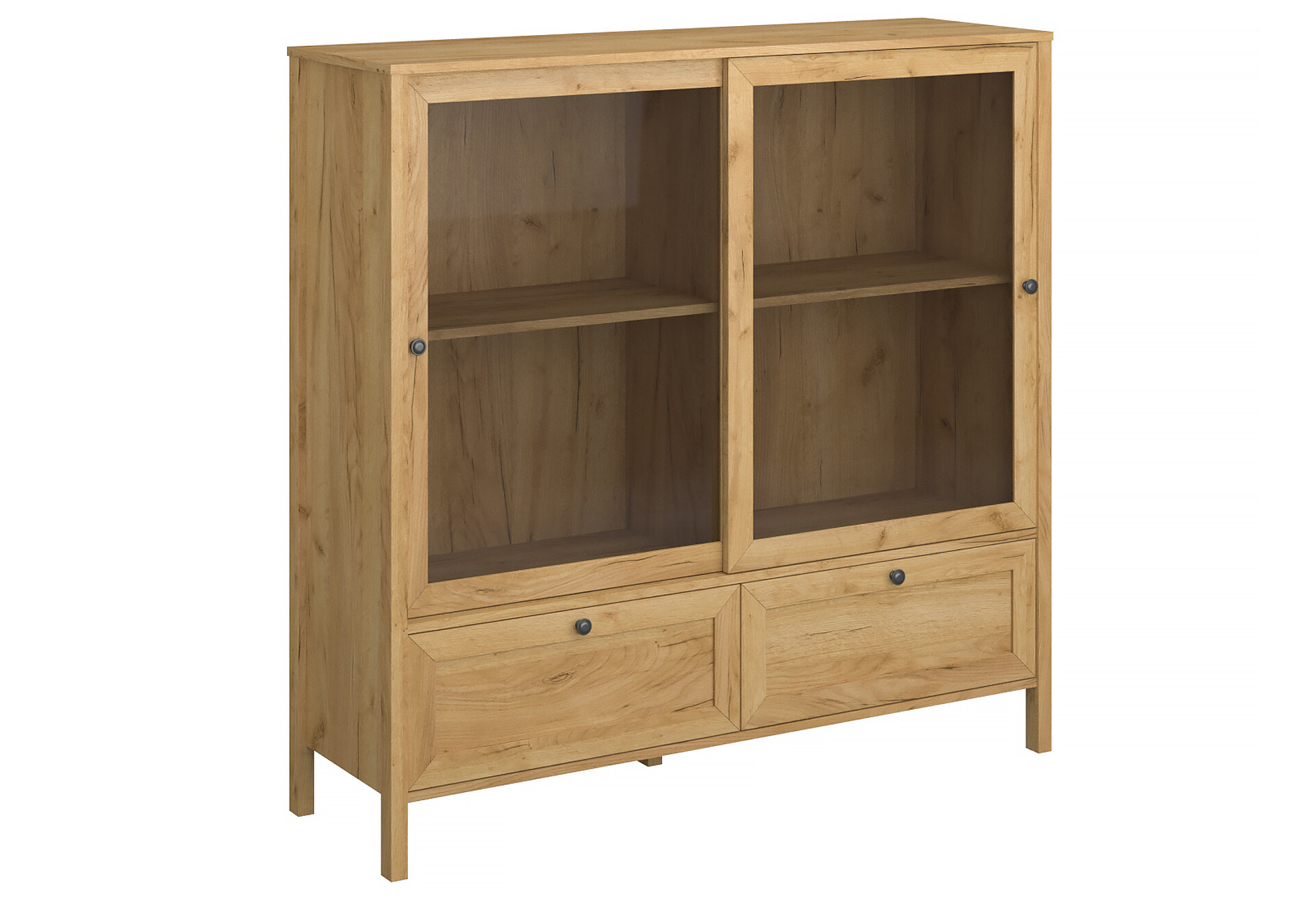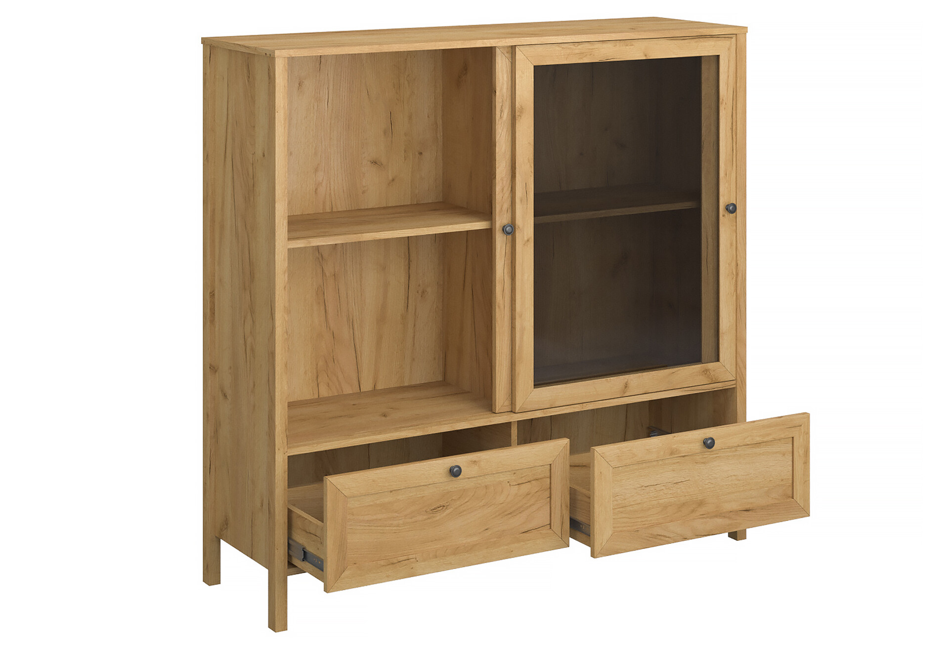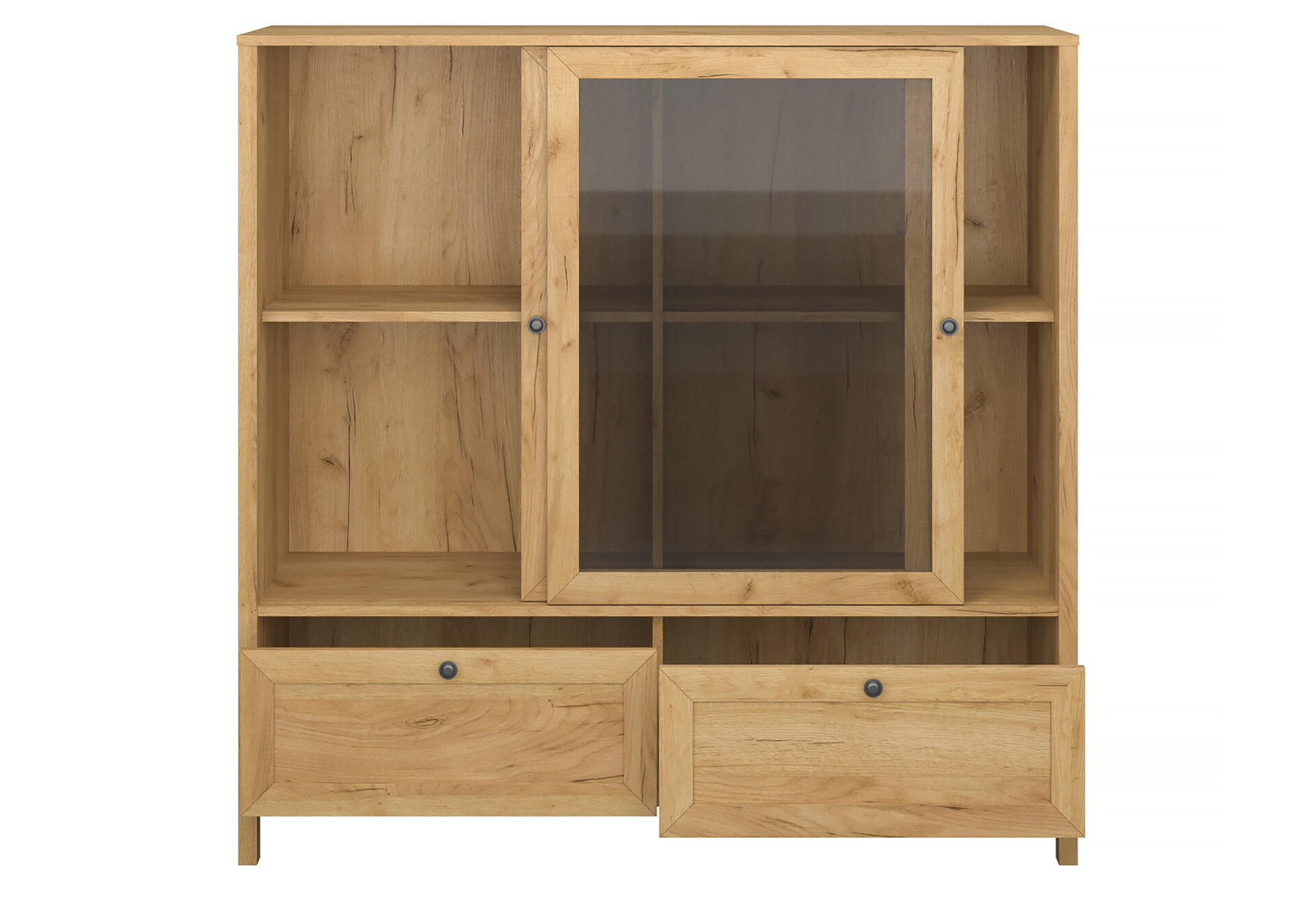 Шкаф-витрина низька ВМВ Холдинг Klark / Кларк с 2 ящиками и полками 84 см Дуб крафт золотой