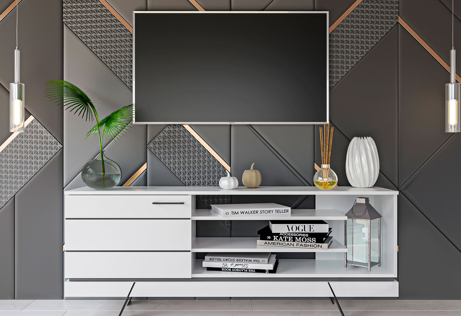 Тумба под ТВ Garant Лайн с дверкой 160 см нимфея альба
