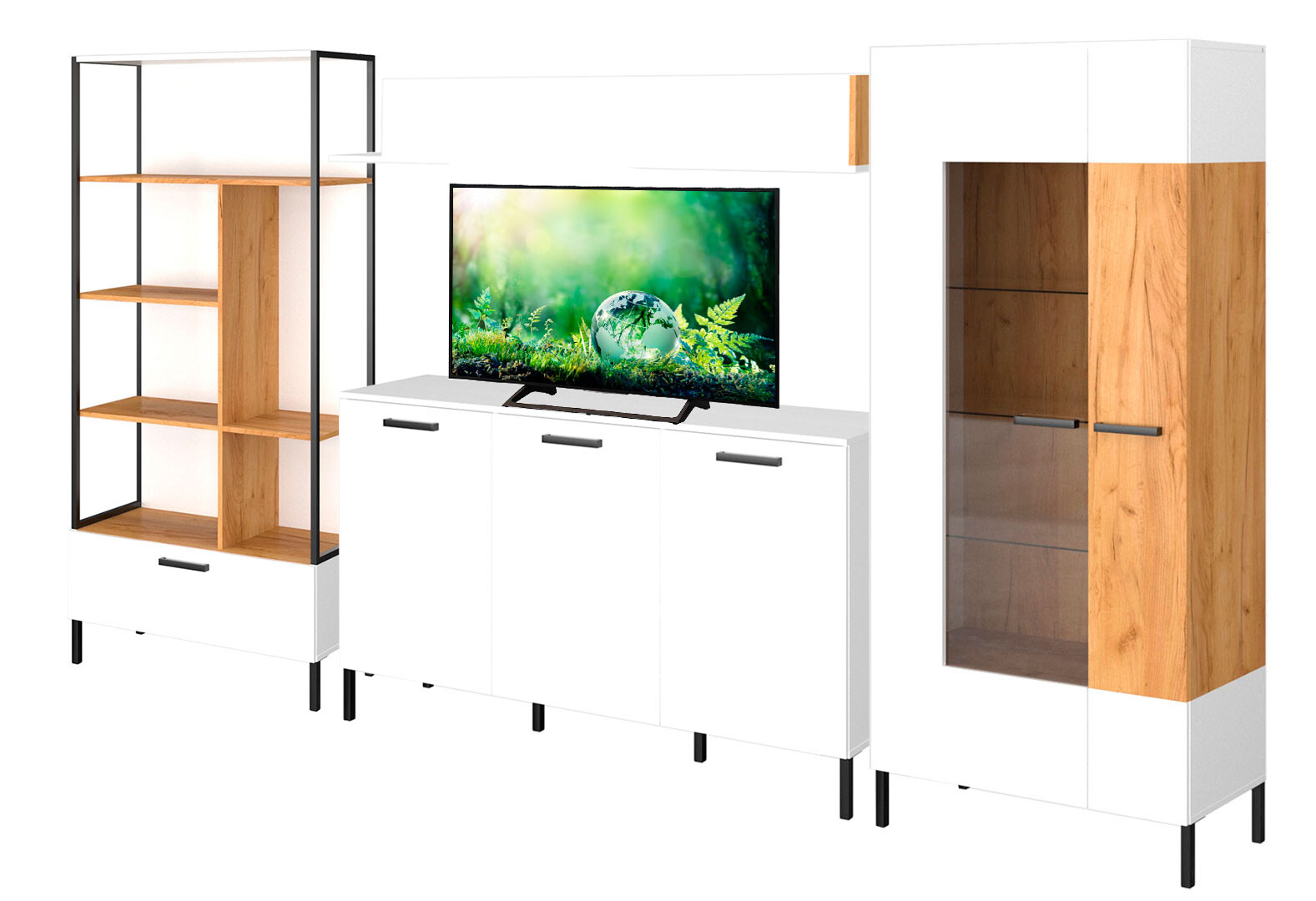 - Комплект стенка с витриной и стеллажом ВМВ Холдинг Сантес 335 см, белый / дуб крафт золотой