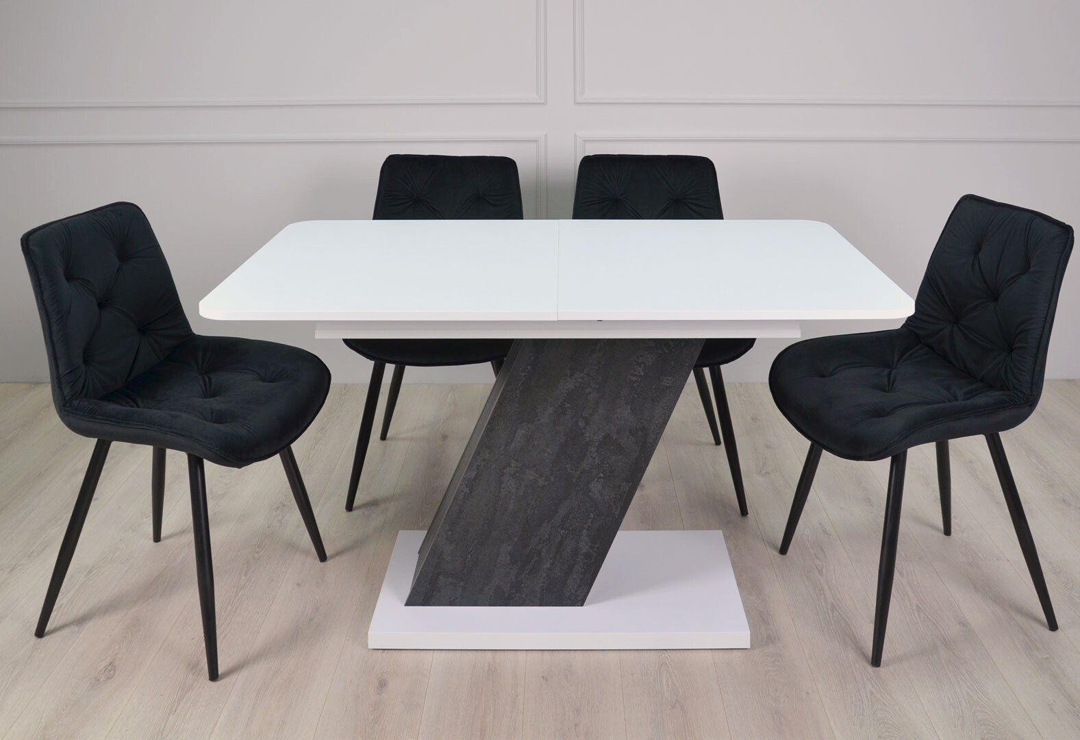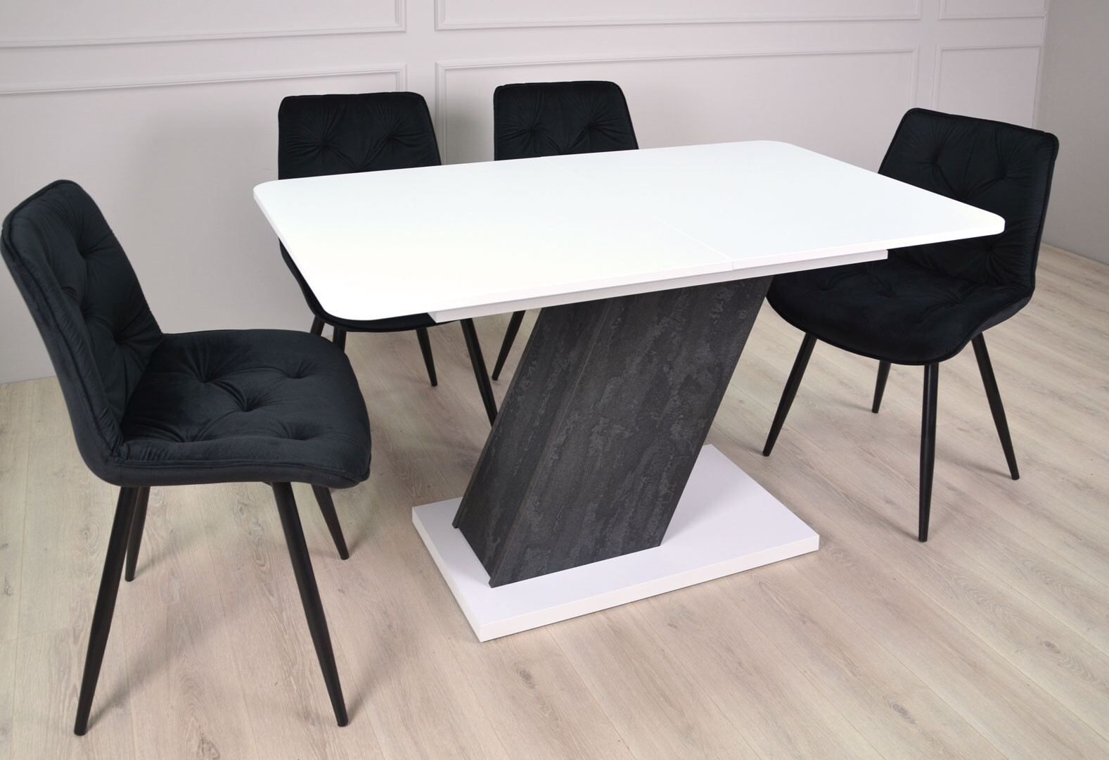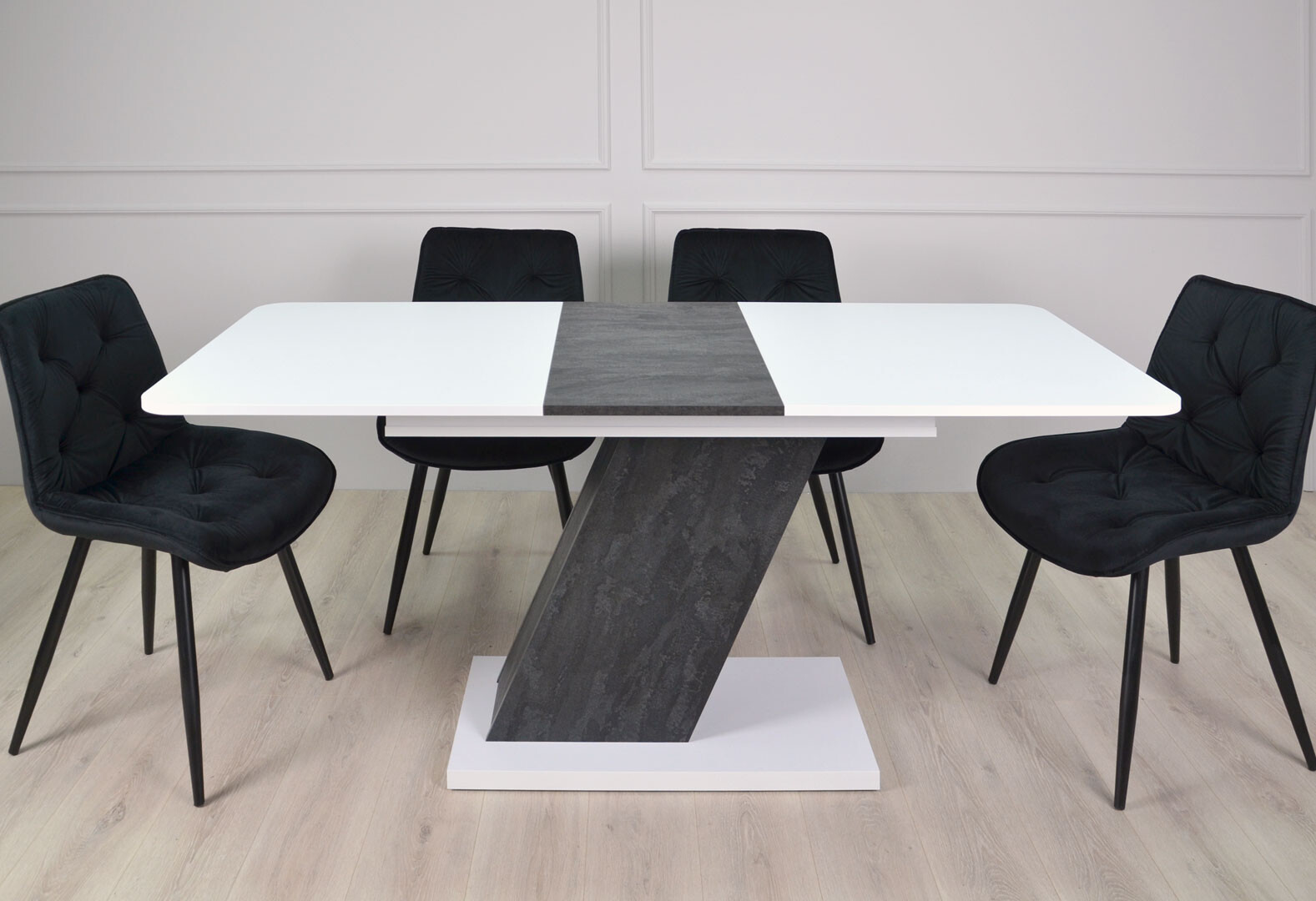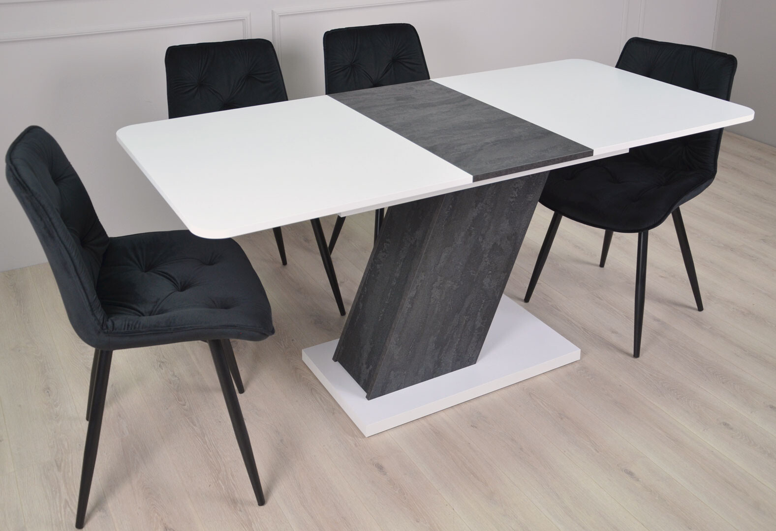 Стол обеденный Intarsio Рио / Rio 140x80 см раскладной, белая аляска/угольный камень
