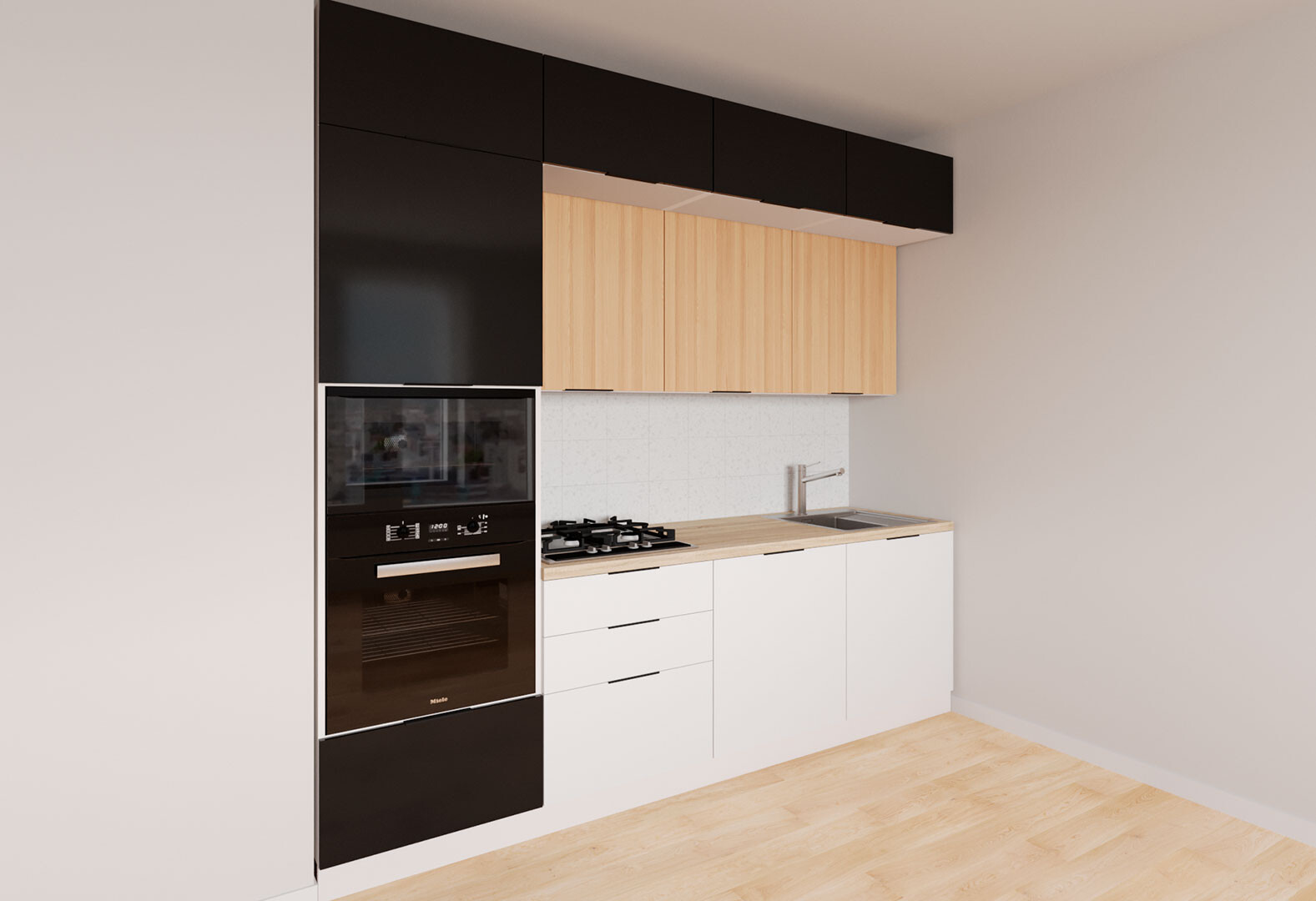 - Кухня Мебель Стар Диплос / Diplos Blum 240 см, верх черный глянец / натуральное дерево, низ белый глянец
