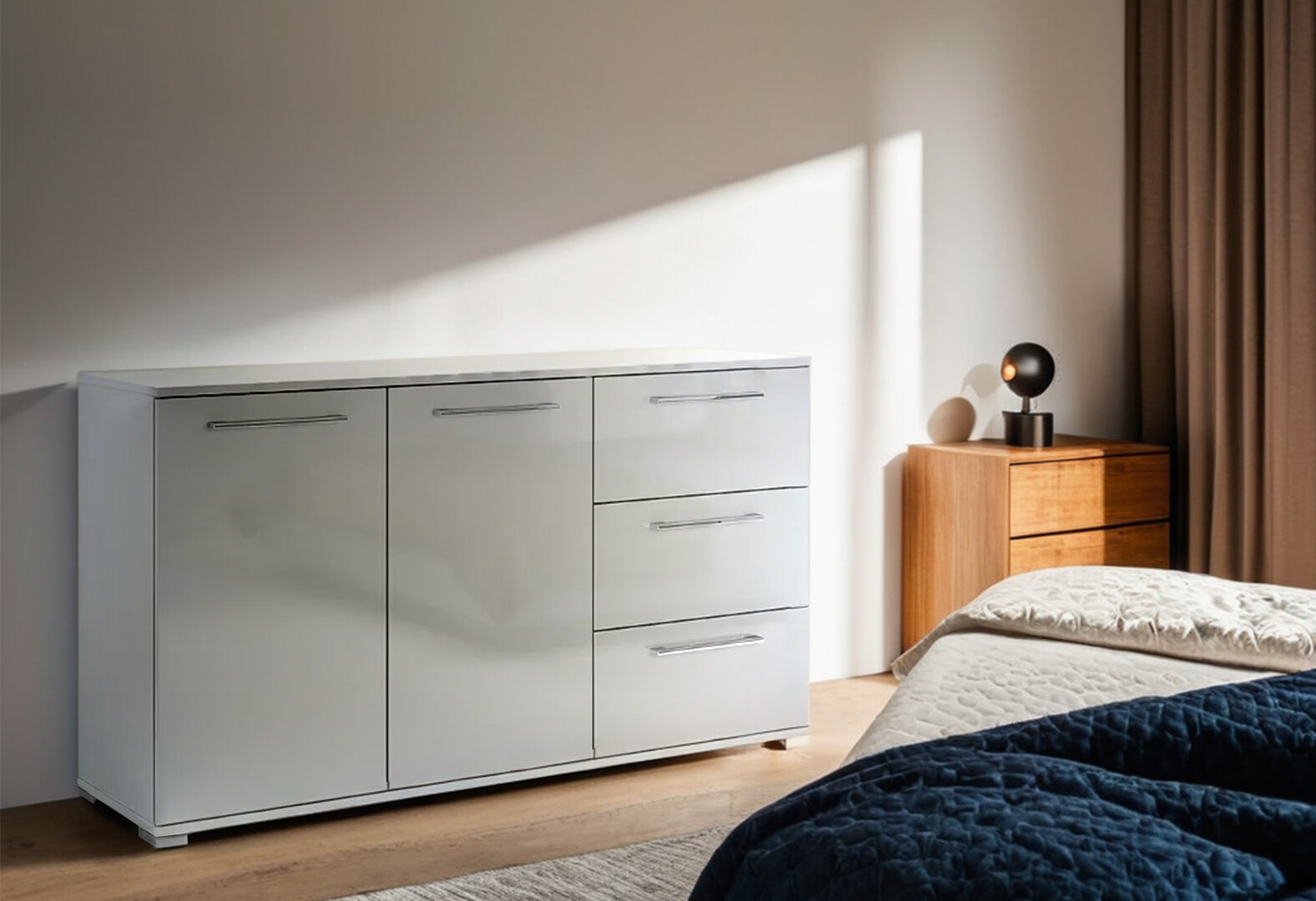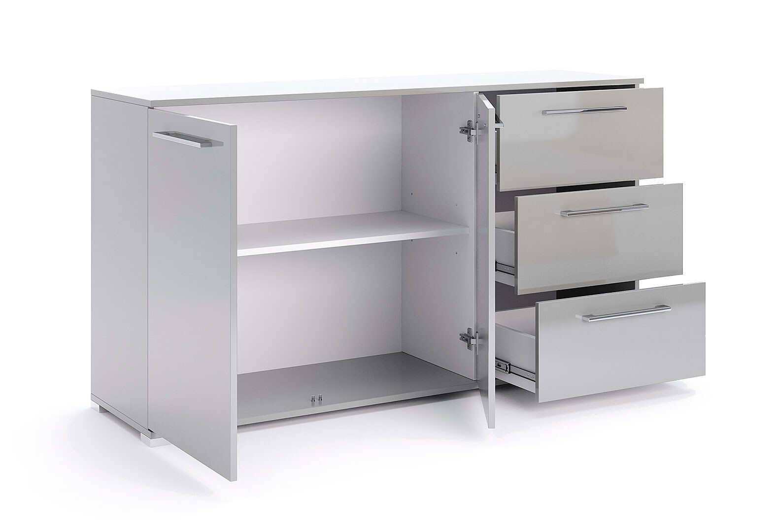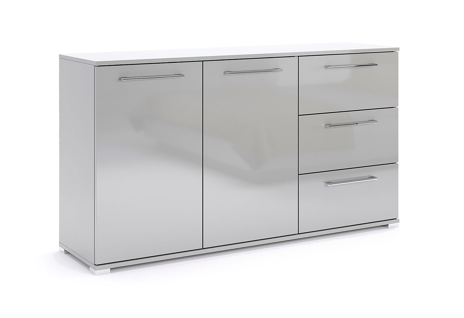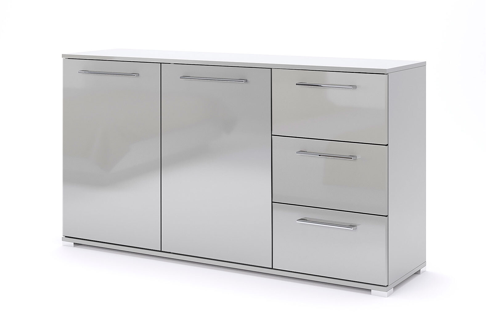 Комод МироМарк Меги / Megy с 2 дверками и 3 ящиками 146 см глянец серый шиншилла