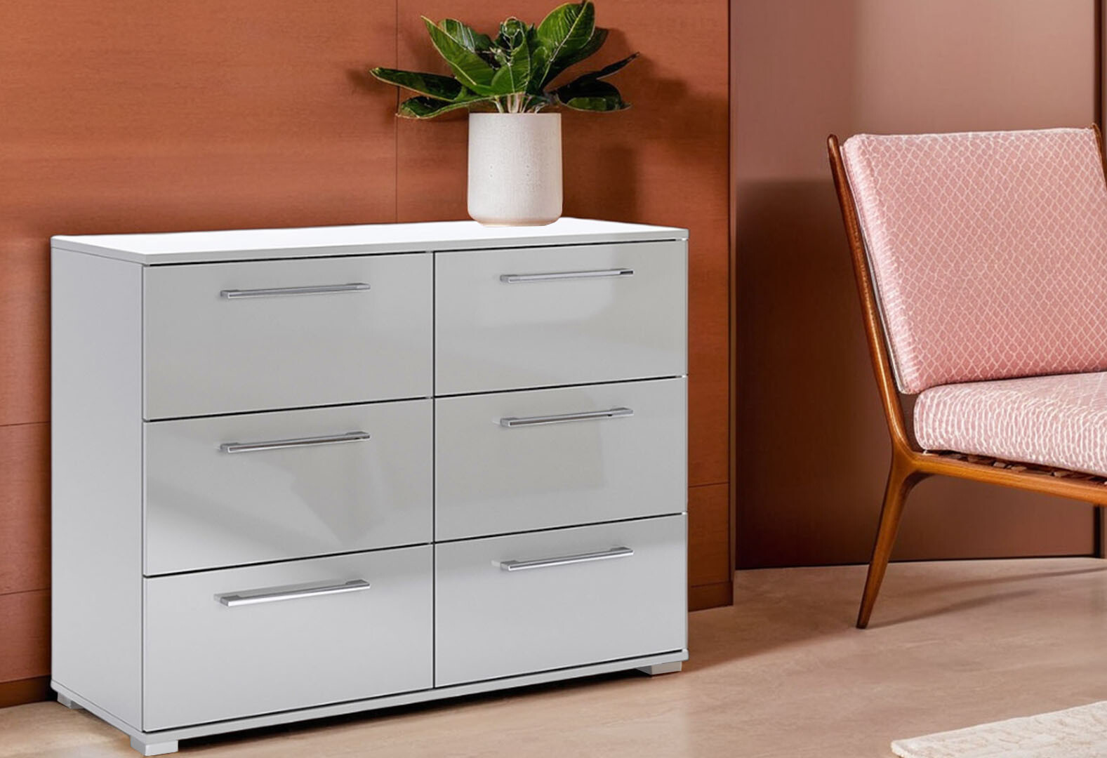 - Комод МироМарк Меги / Megy с 6 ящиками 108 см глянец серый шиншилла