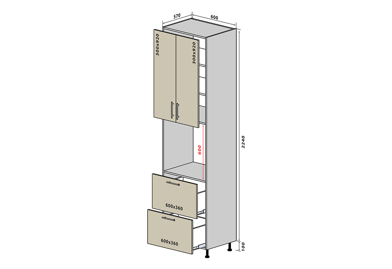 Н21 Пенал 2Д2Ш 234 New Моно Luxe Вип-Мастер