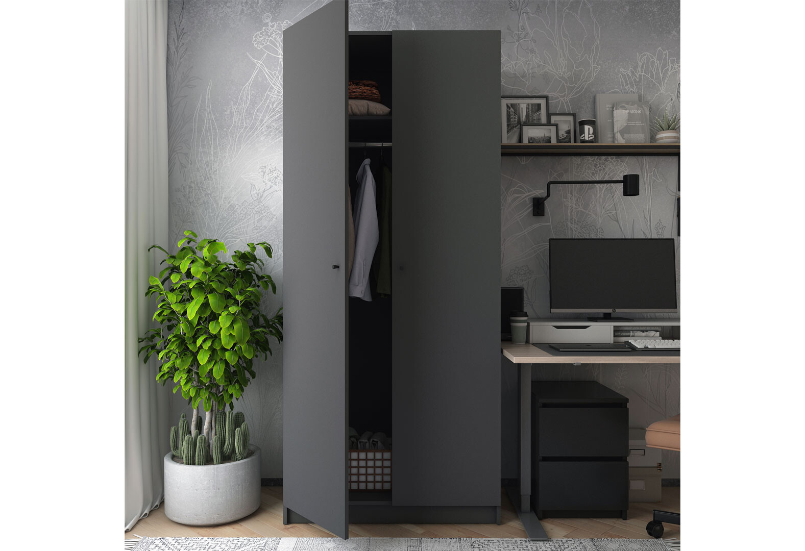 Шкаф Doros Promo / Промо 2 ДСП 2-дверная 90 см Графит