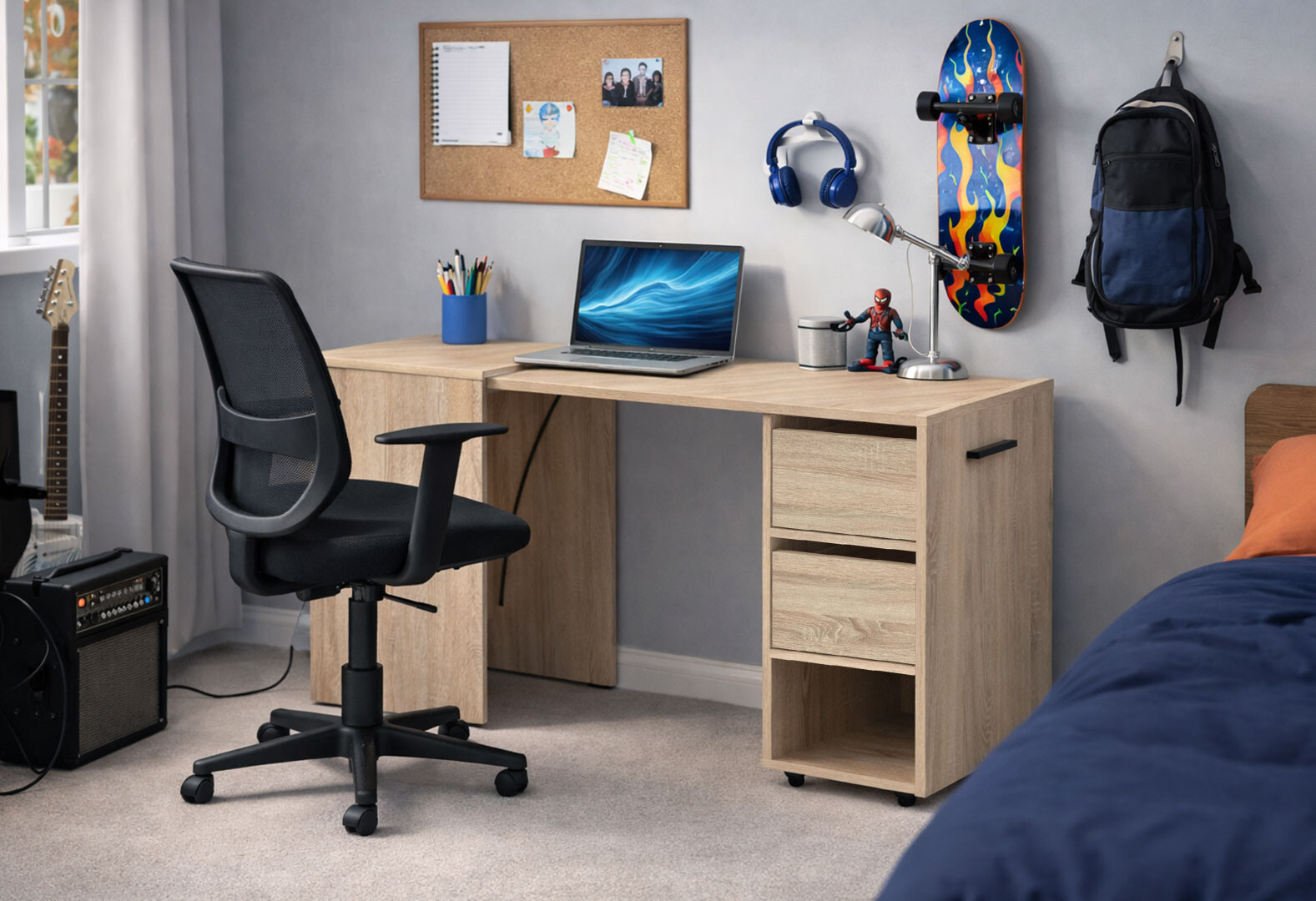 Стол-тумба трансформер Knap Knap Hobana / Хобана Ш2 с полкой и ящиками, Дуб сонома