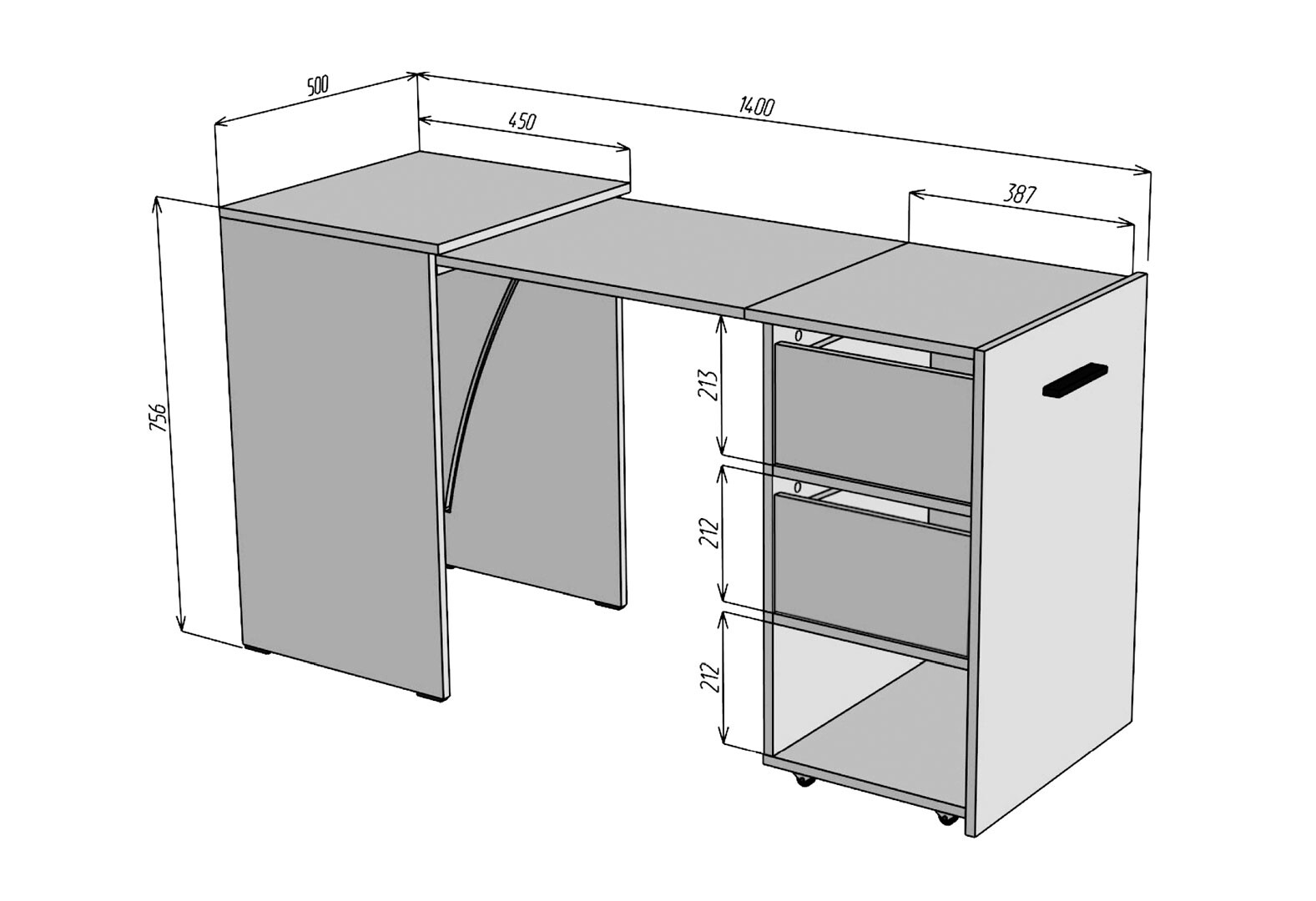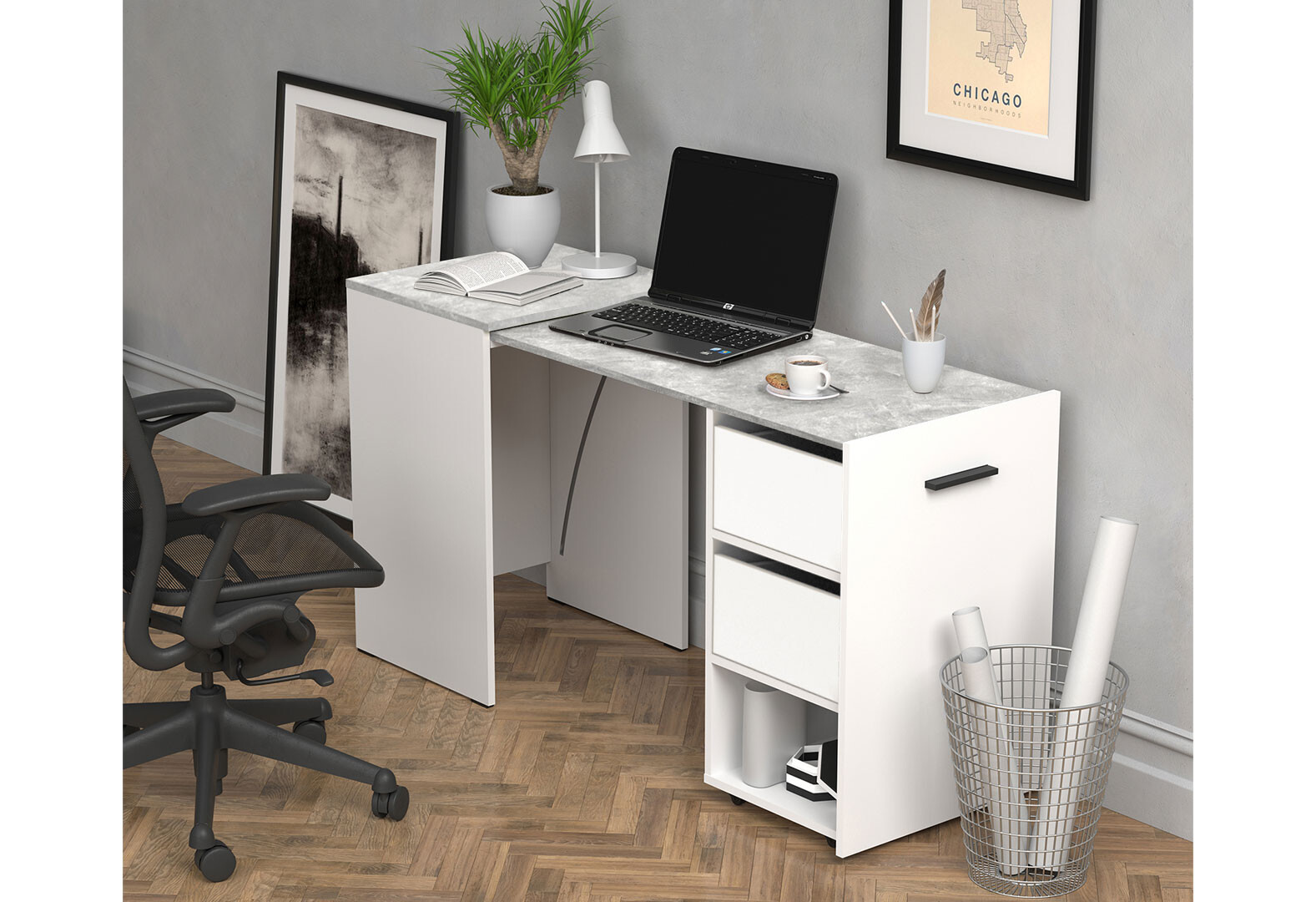 Стол-тумба трансформер Knap Knap Hobana / Хобана Ш2 с полкой и ящиками, Белый / Ателье светлый