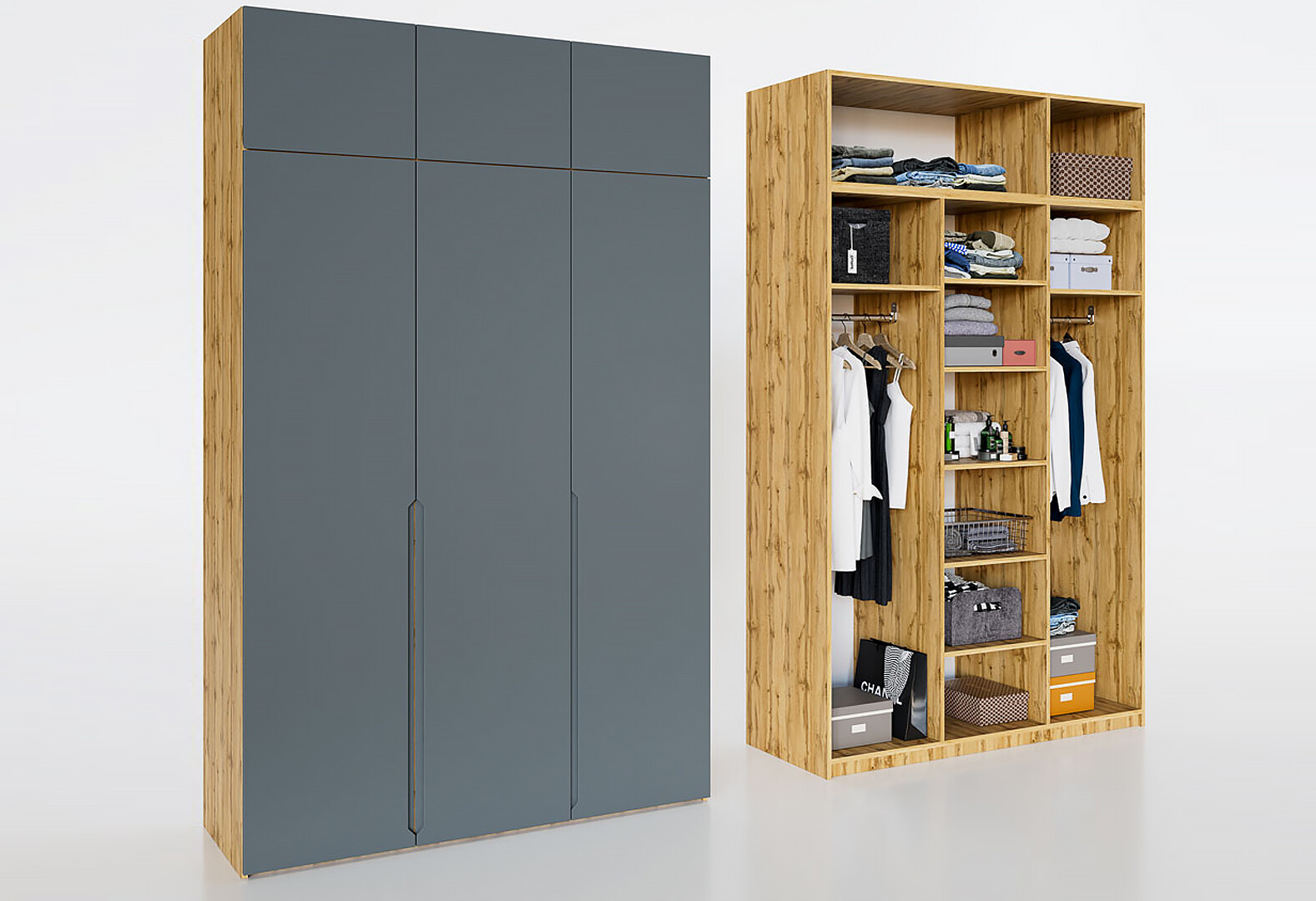 - Шкаф Вип-Мастер Неаполь 3-дверный с антресолью 150 см Дуб аппалачи / Антрацит