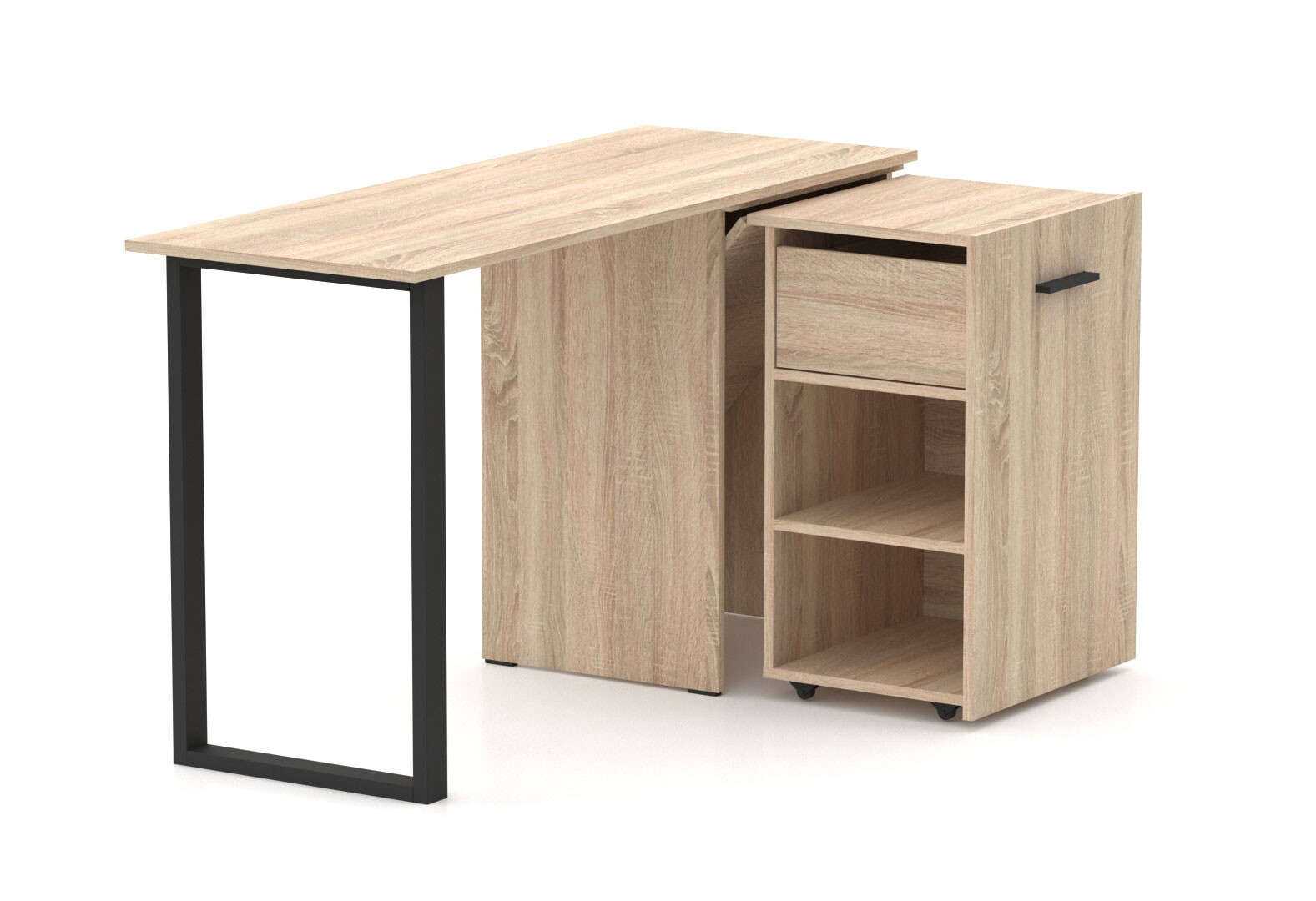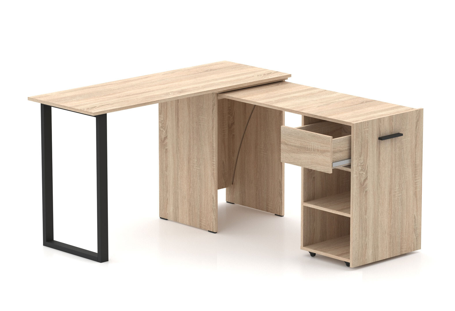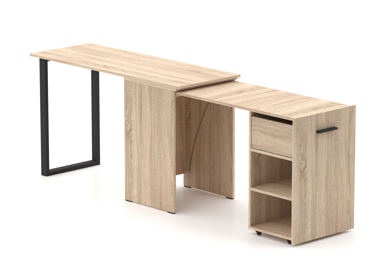 Стол-трансформер Knap Knap Hobana+Jambo / Хобана+Джамбо Ш1 с дополнительной поворотной столешницей, полками и ящиком, Дуб сонома