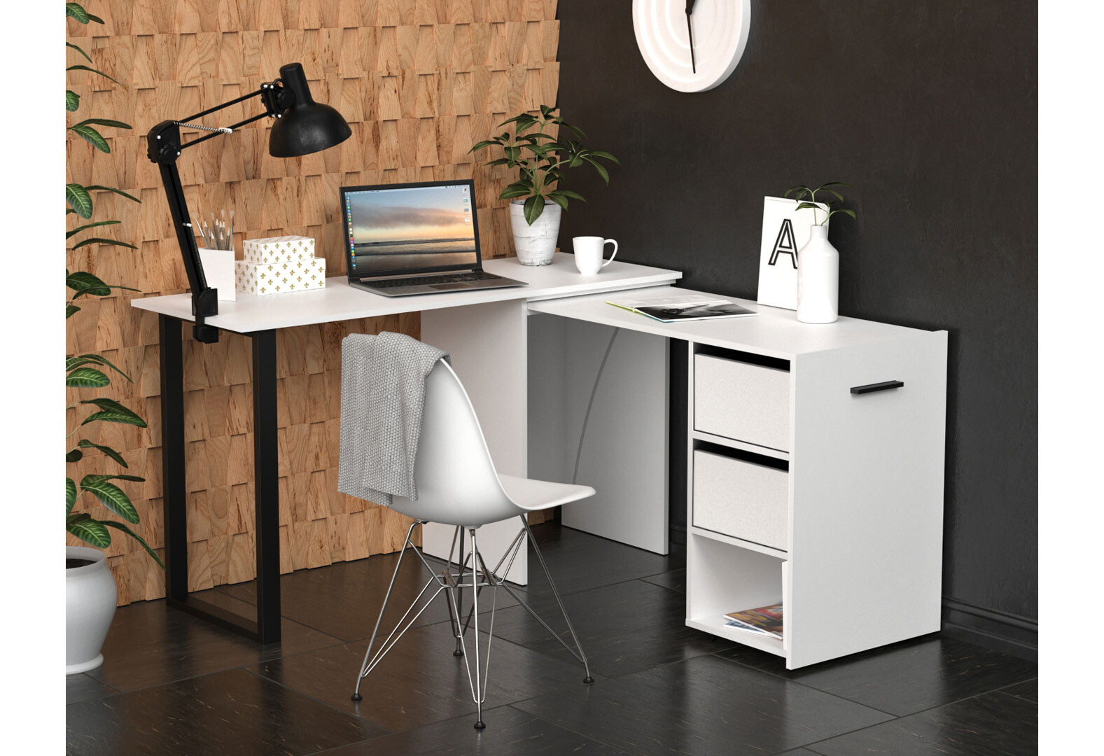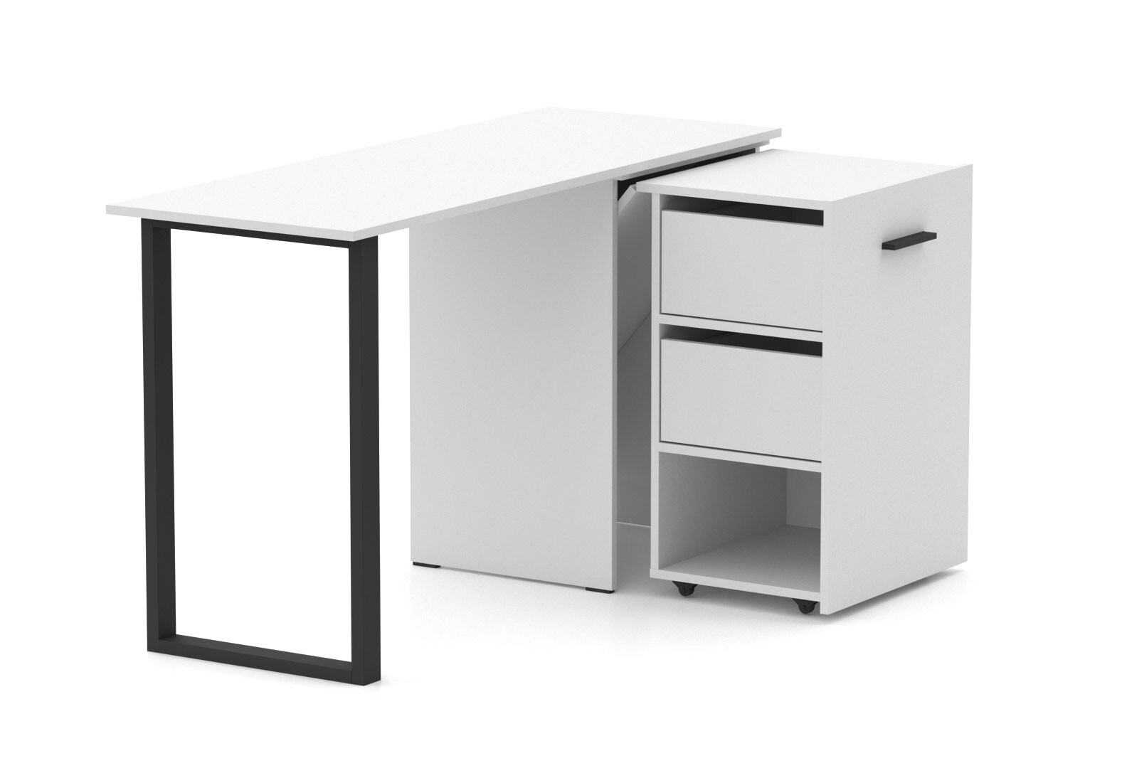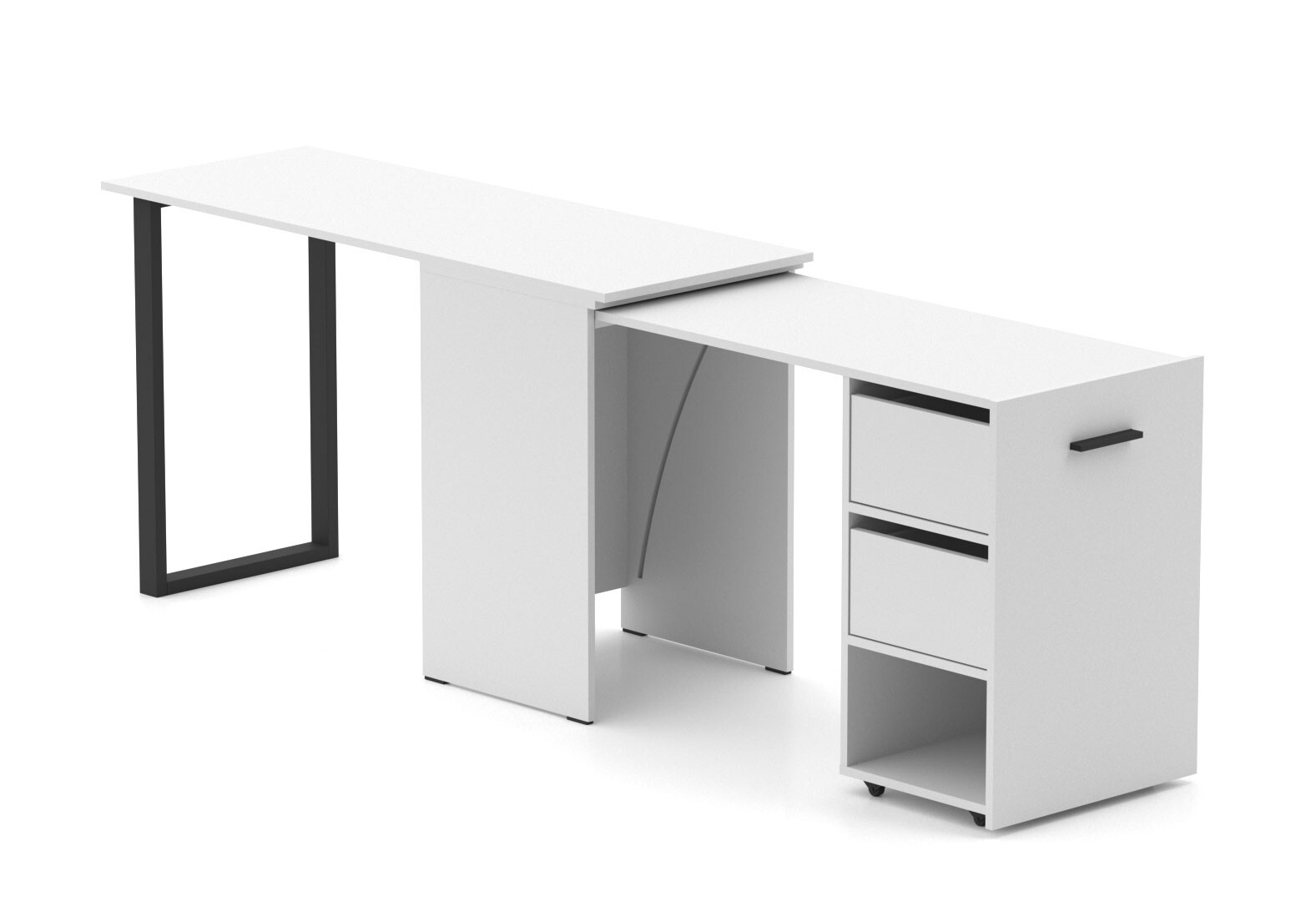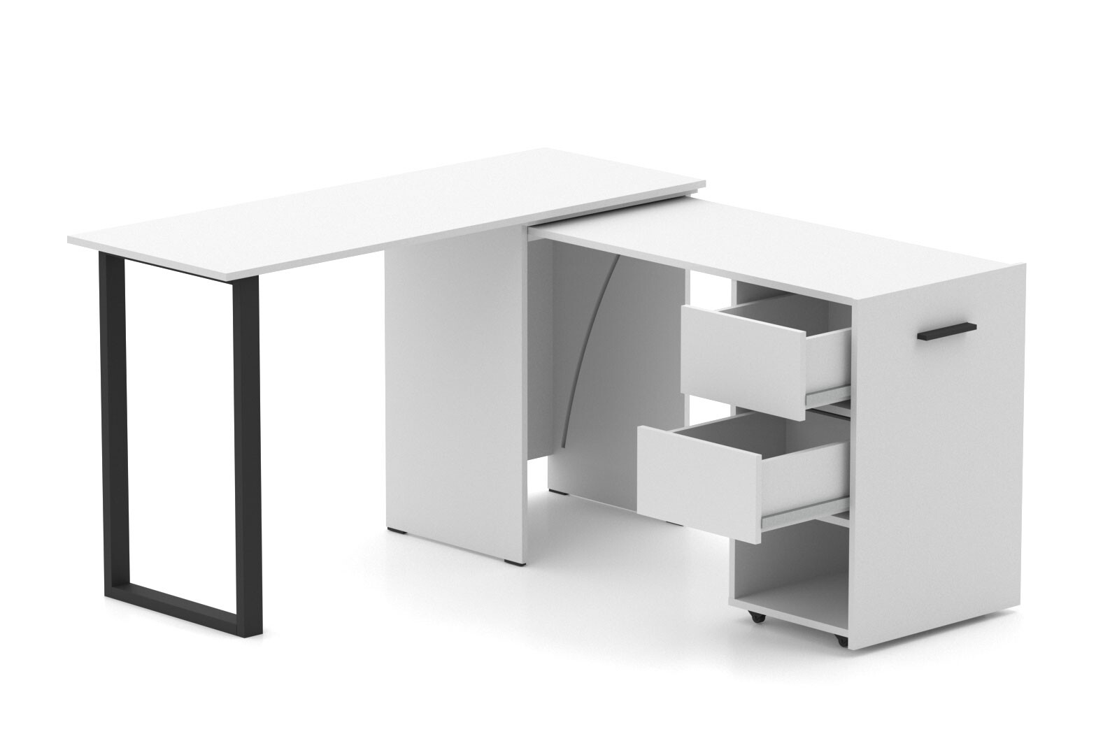 Стол-трансформер Knap Knap Hobana+Jambo / Хобана+Джамбо Ш2 с дополнительной поворотной столешницей, полкой и ящиками, Белый