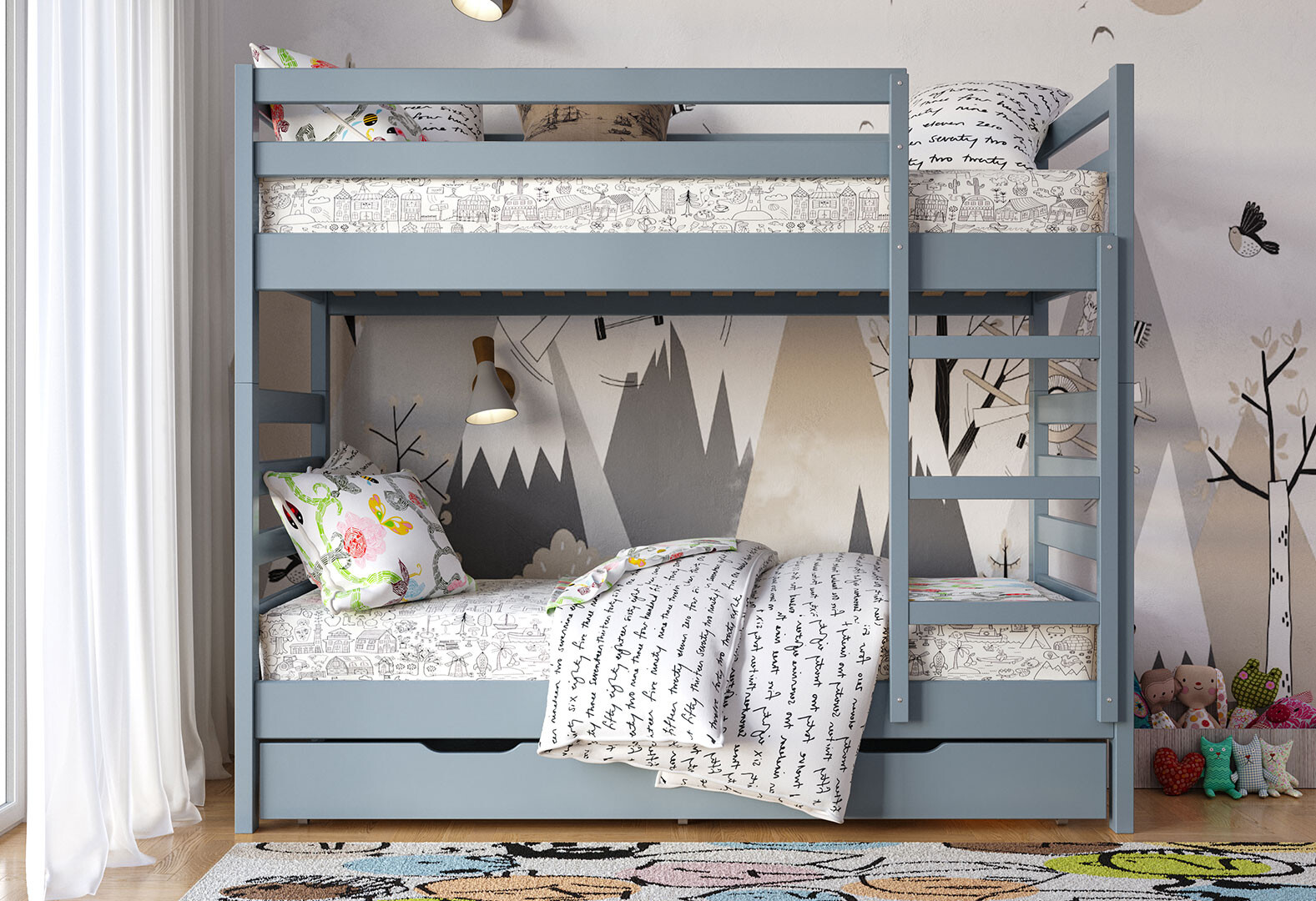 Кровать двухъярусная Арбор Древ Рио 90х190, сосна, серый