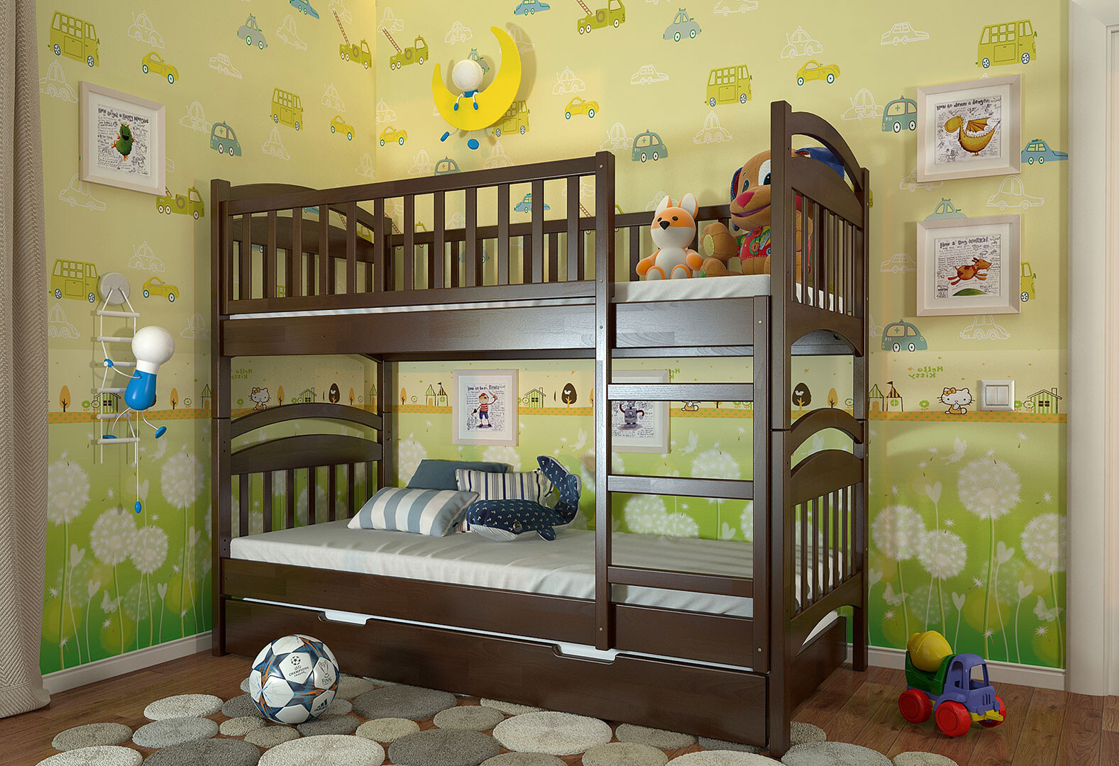 Кровать двухьярусная Арбор Древ Смайл сосна 80х200, темный орех