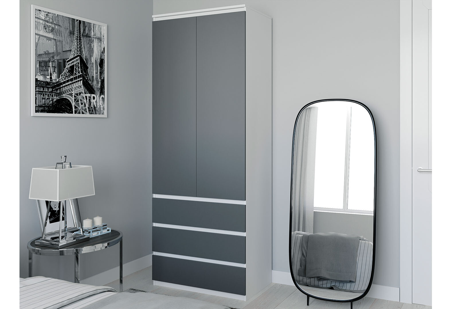 Изображение 2 - Шкаф Moreli Т211 со штангой и ящиками 2-дверный 80 см белый / антрацит