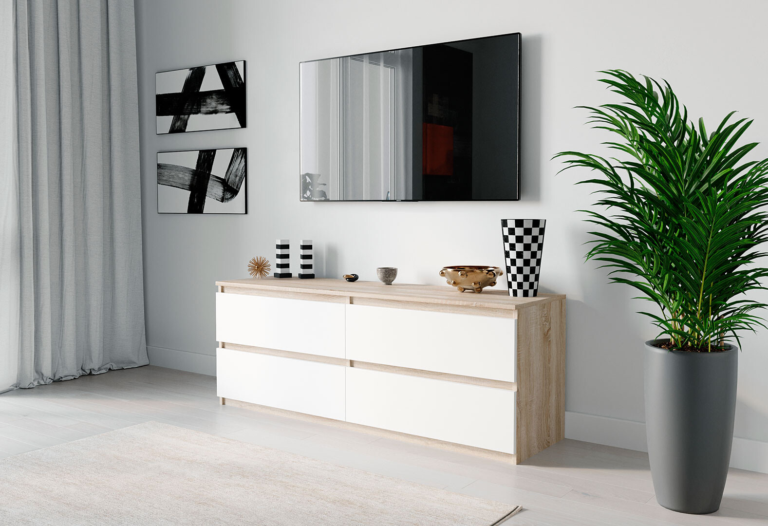 Тумба под ТВ Moreli Локи (Т223) с ящиками 140 см дуб сонома / белый