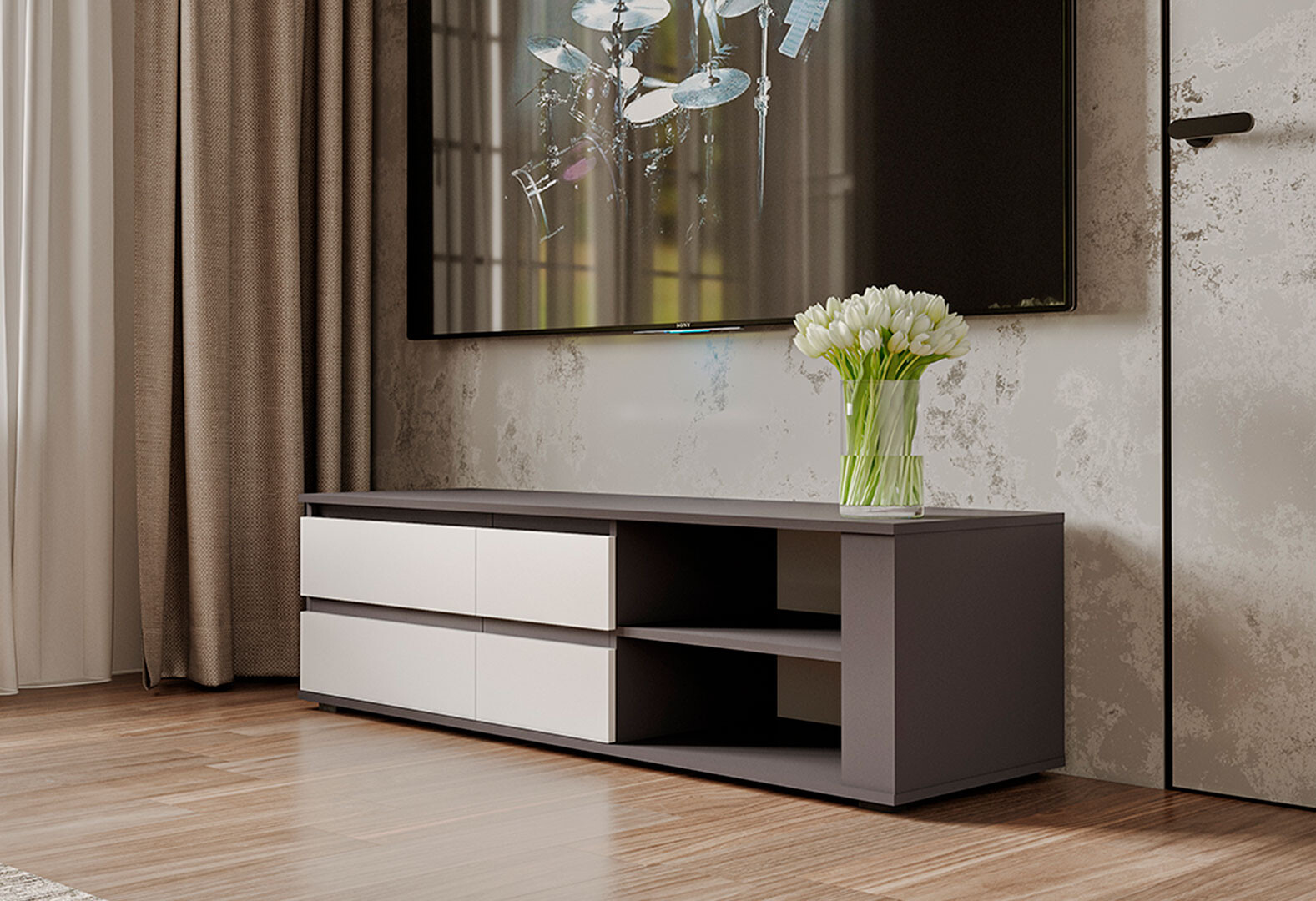 Изображение 1 - Тумба под ТВ Moreli Лиза (Т205) с 2 дверцами и полками 150 см антрацит / белый