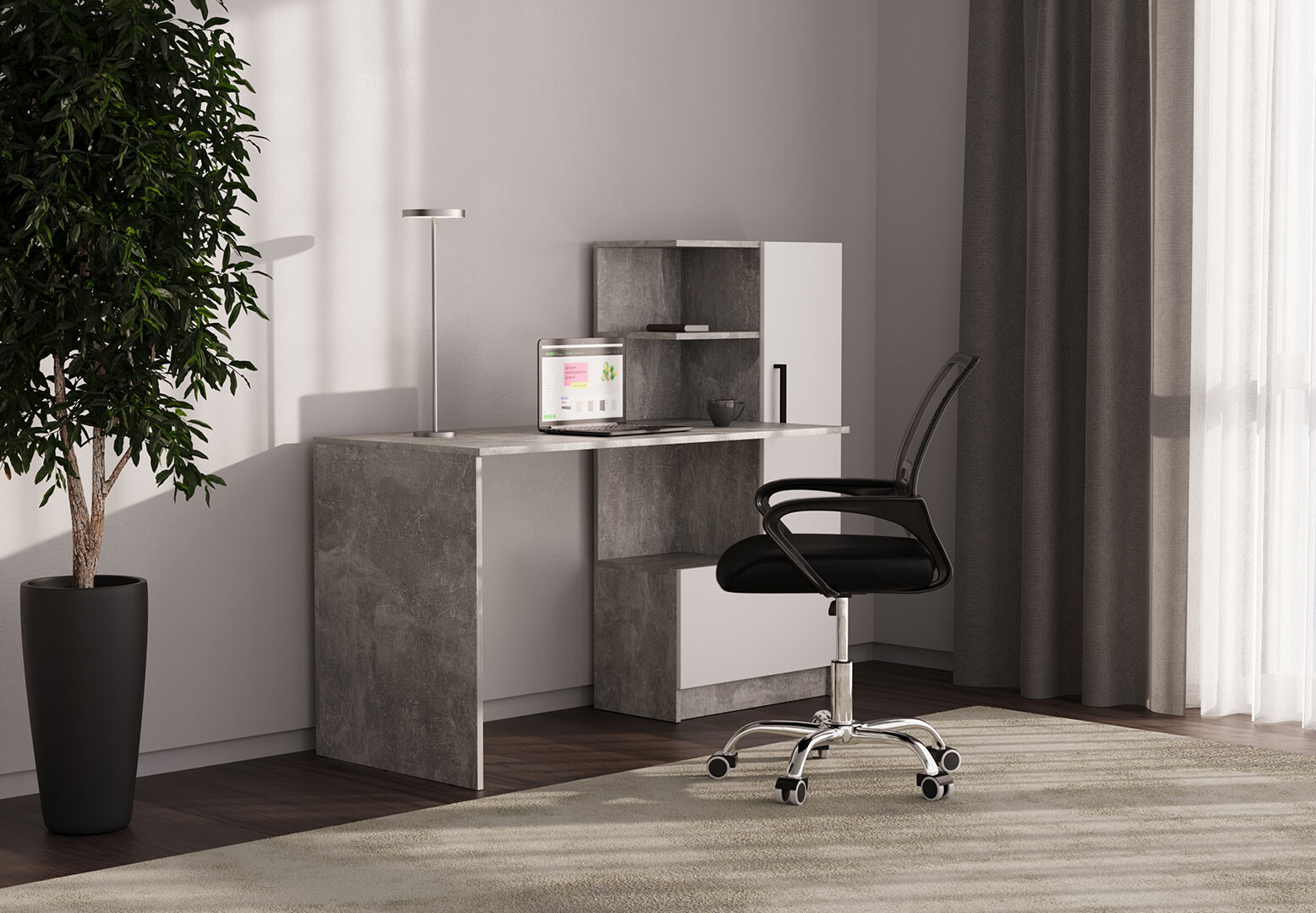 Стол компьютерный Garant Стандарт 150x59 см со стеллажом Индастриал / Нимфея альба, сборка правая