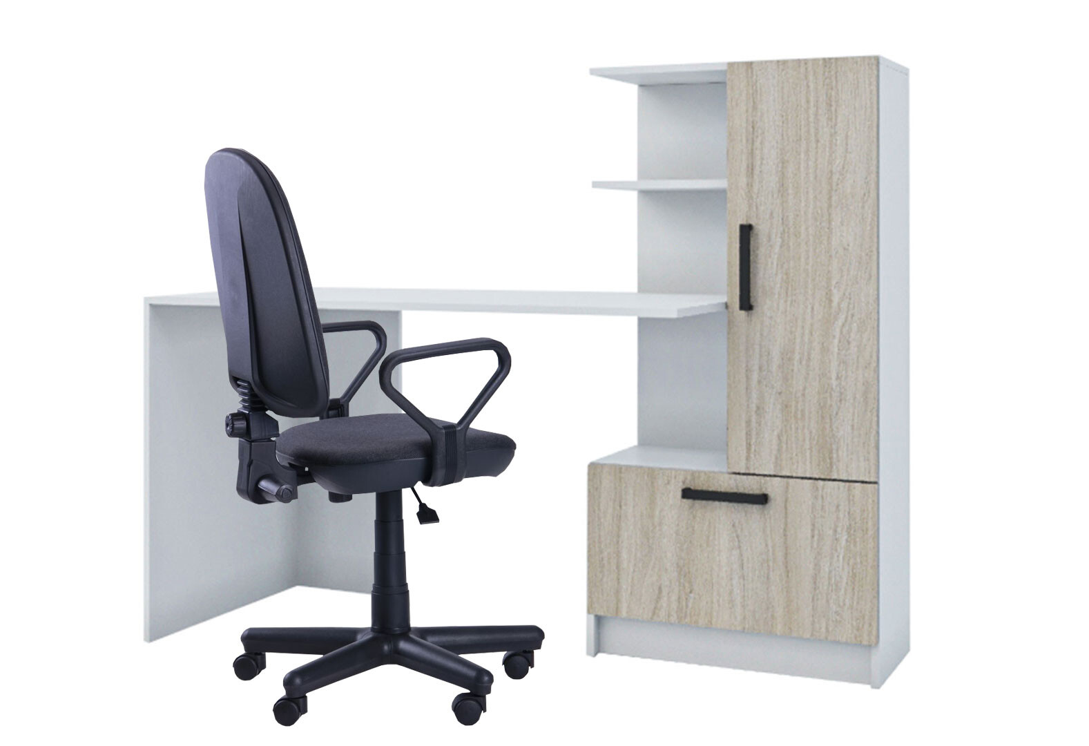 Стол компьютерный Garant Стандарт 150x59 см со стеллажом Нимфея альба / Урбан ойстер, сборка правая