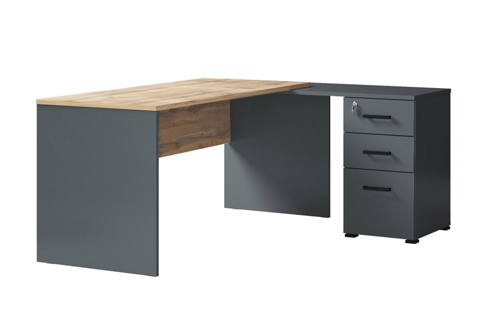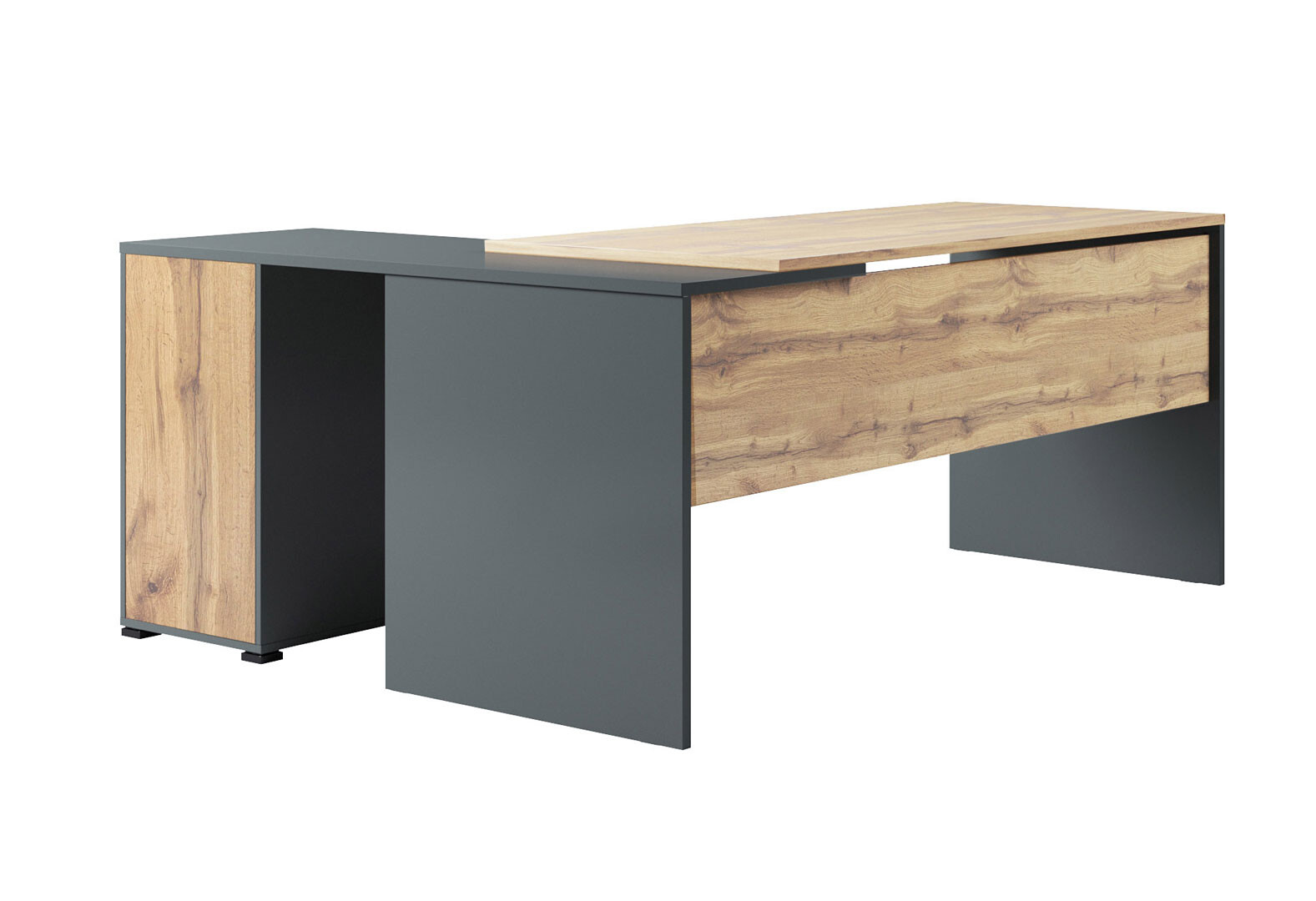 Стол письменный для начальника правый МироМарк Джуриан с тумбой 180x140 см, антрацит / дуб вотан