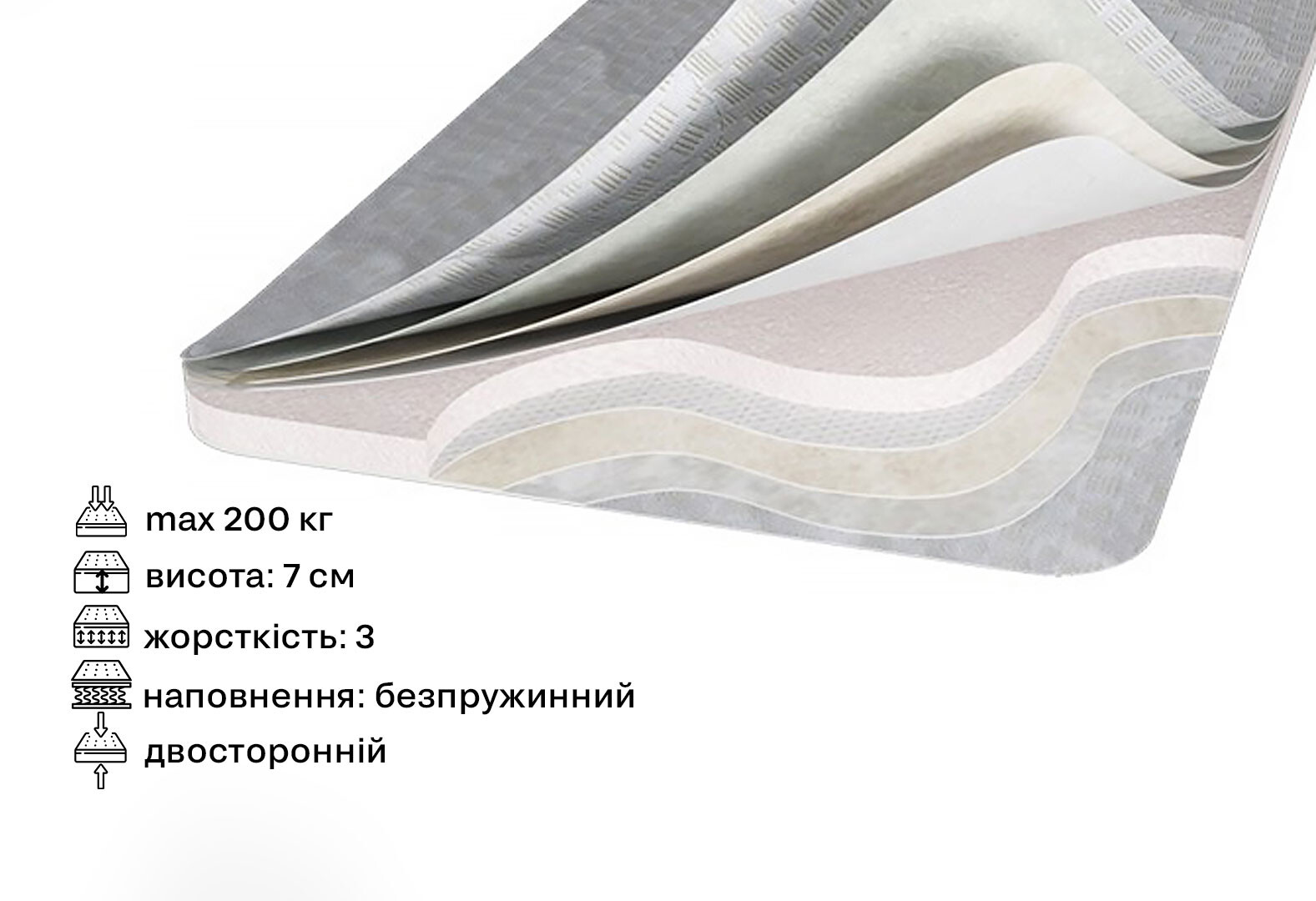 Матрас Svit Mebliv Топпер-футон №5 категория 2, чехол из жаккарда с тесьмой 80х200