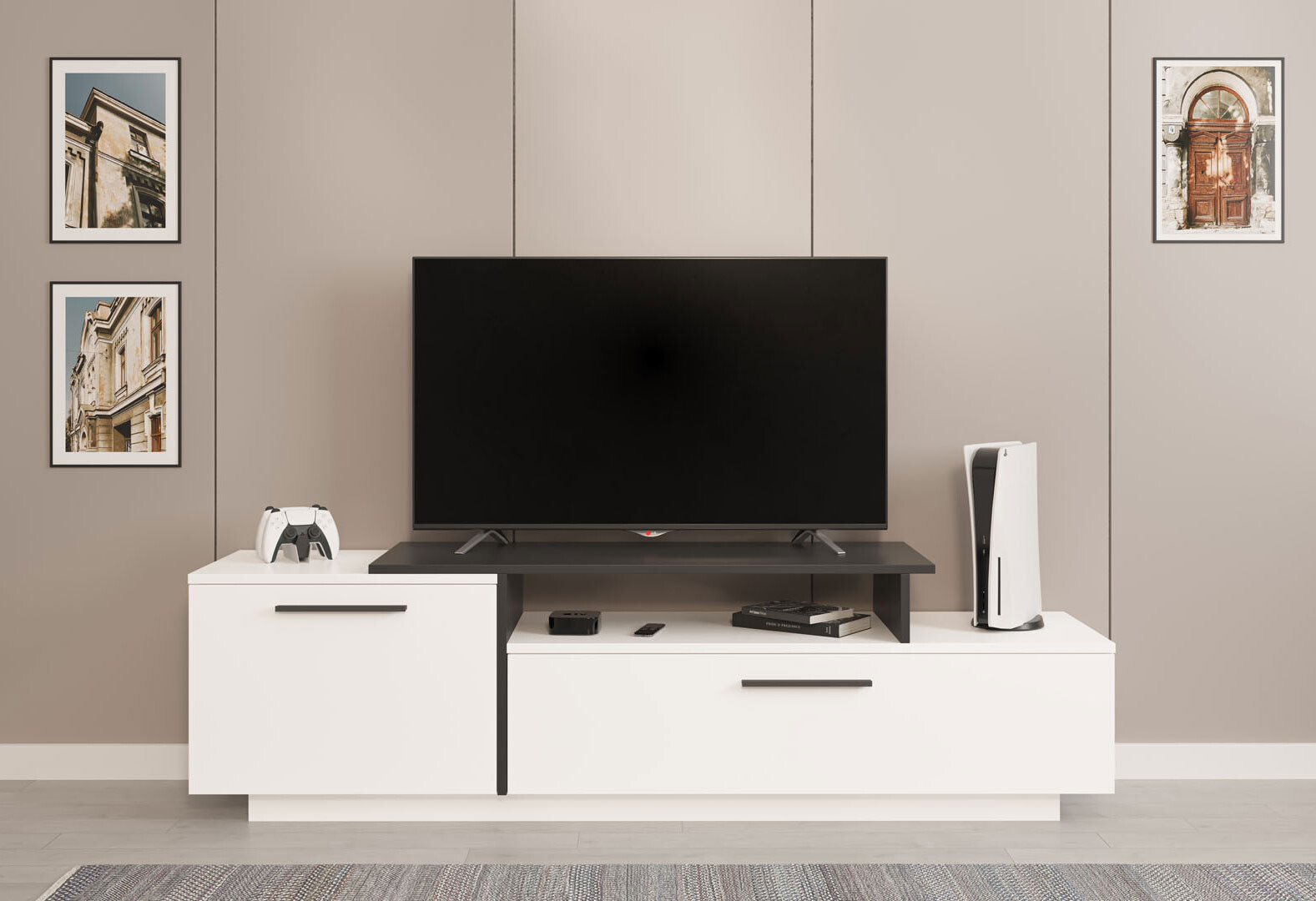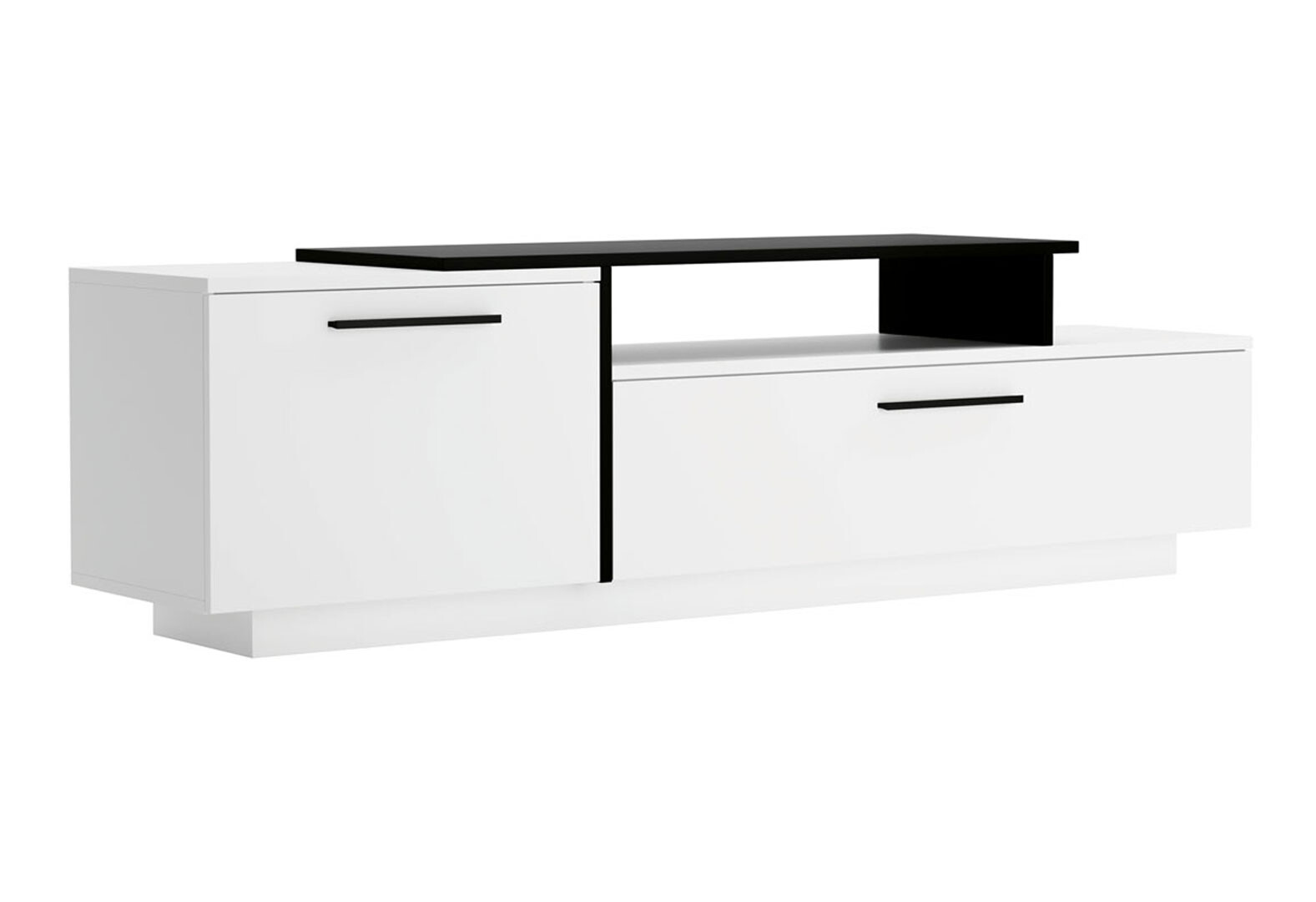 Тумба под ТВ Svit Mebliv Фиби с дверцами и полками 180 см, Нимфеа альба, черный / нимфеа альба