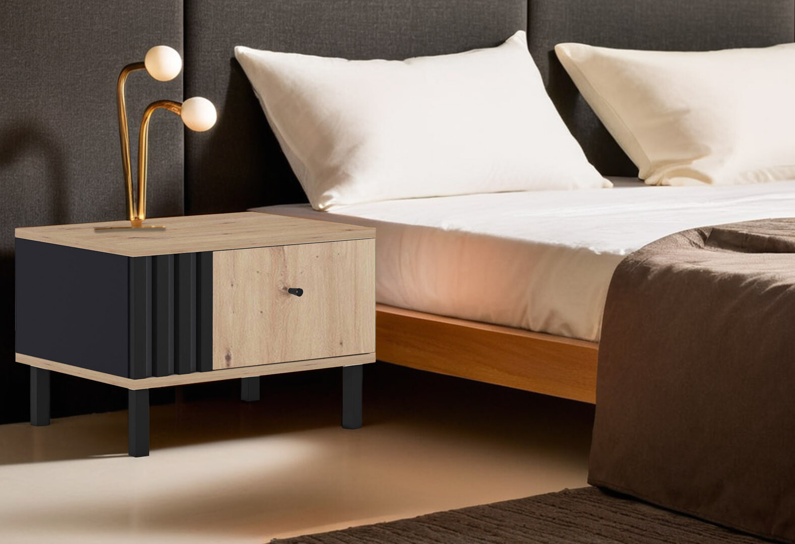 Тумба прикроватная Svit Mebliv Тэо с ящиком 50 см, декор слева, дуб артизан / антрацит
