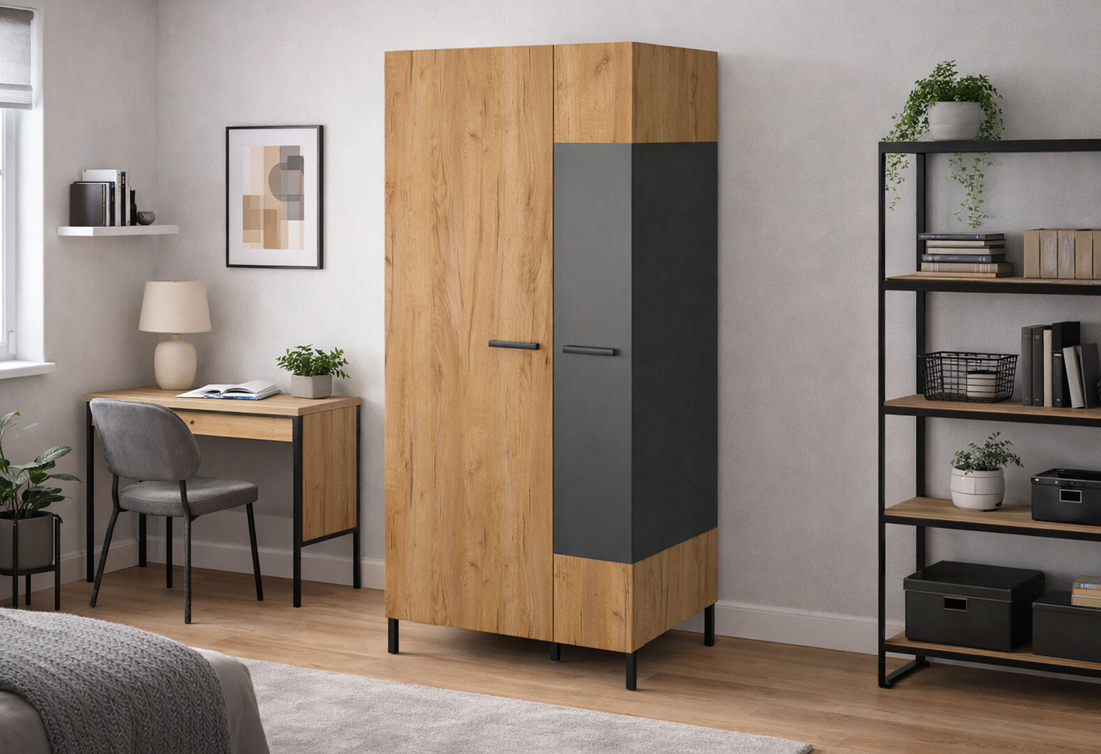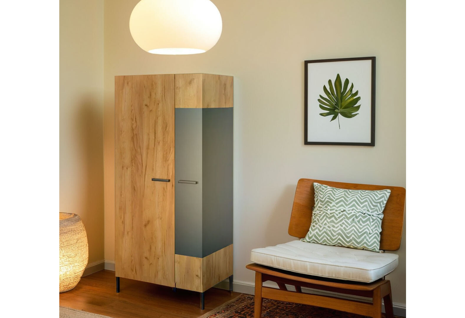 Шкаф ВМВ Холдинг Сантес 2-дверный 90 см дуб крафт золотой / антрацит