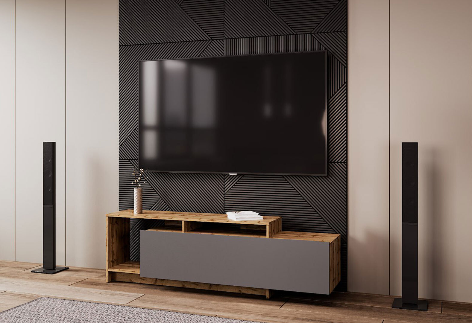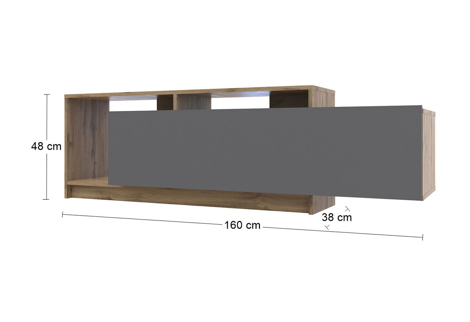 Тумба под ТВ Doros U2 с дверкой и полками 160 см, Тахо / Графит