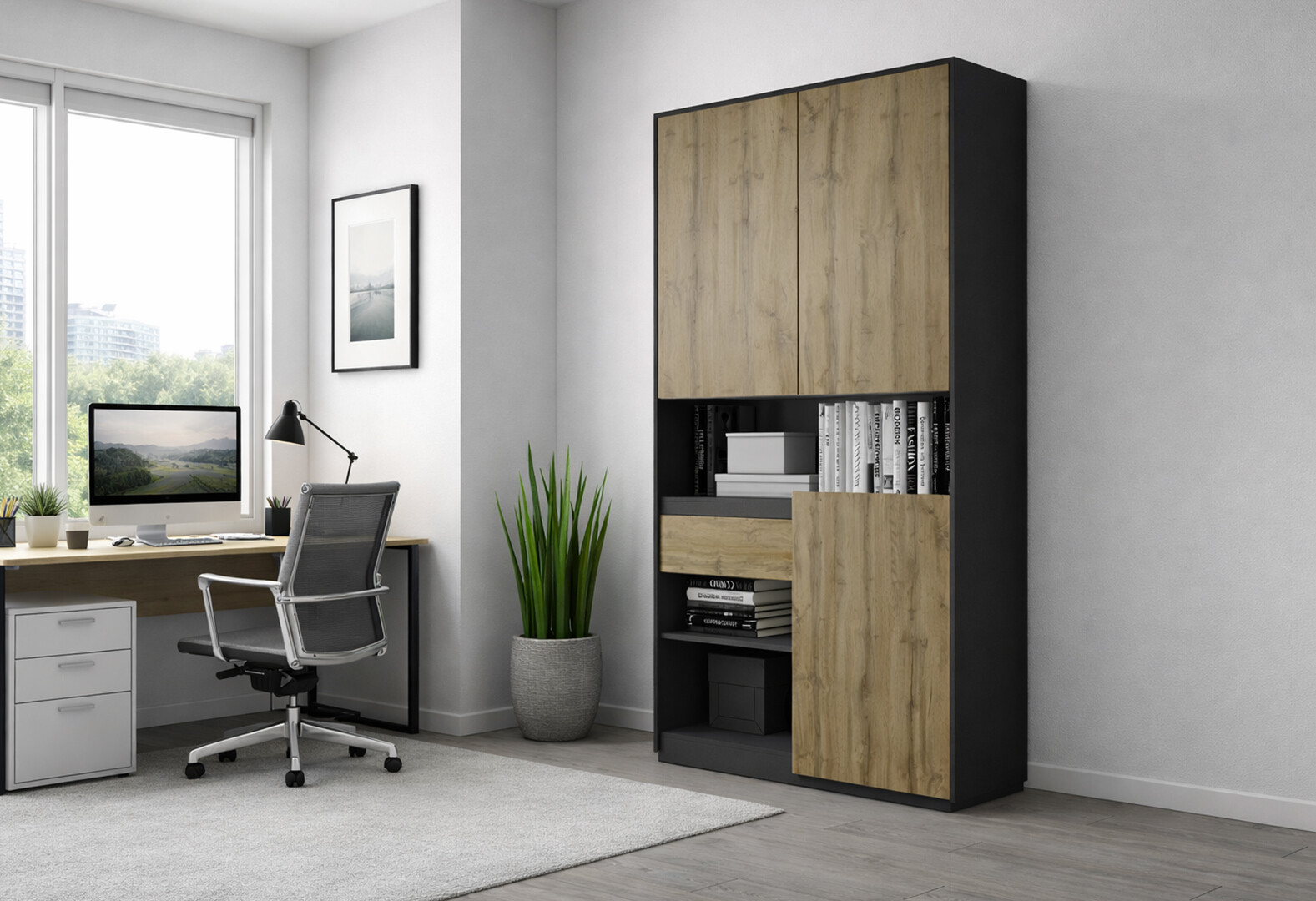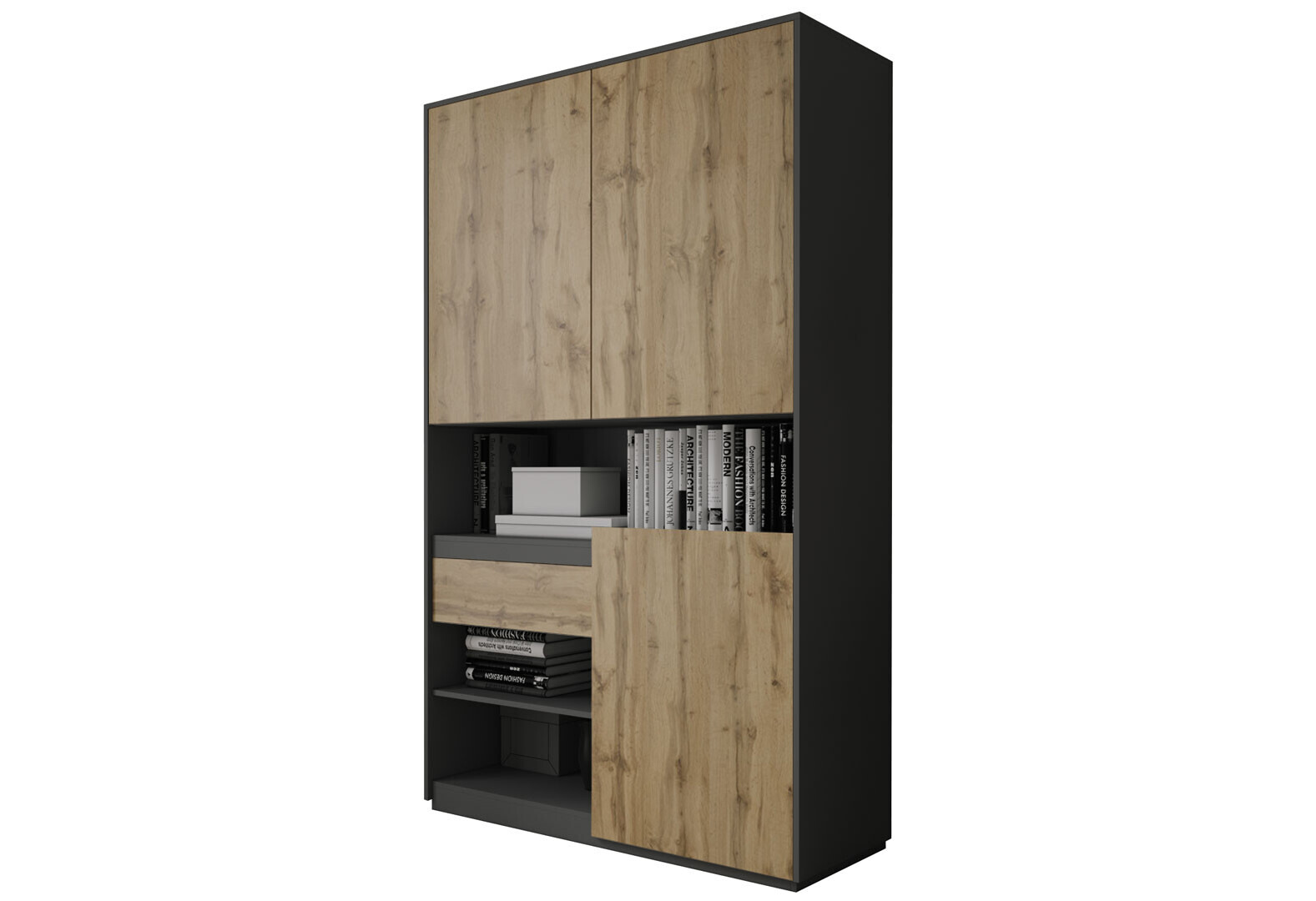 Пенал Moreli RS-1 с полками, дверцами и ящиком 124 см антрацит дуб аппалачи