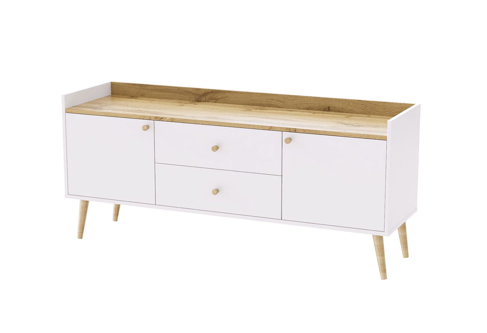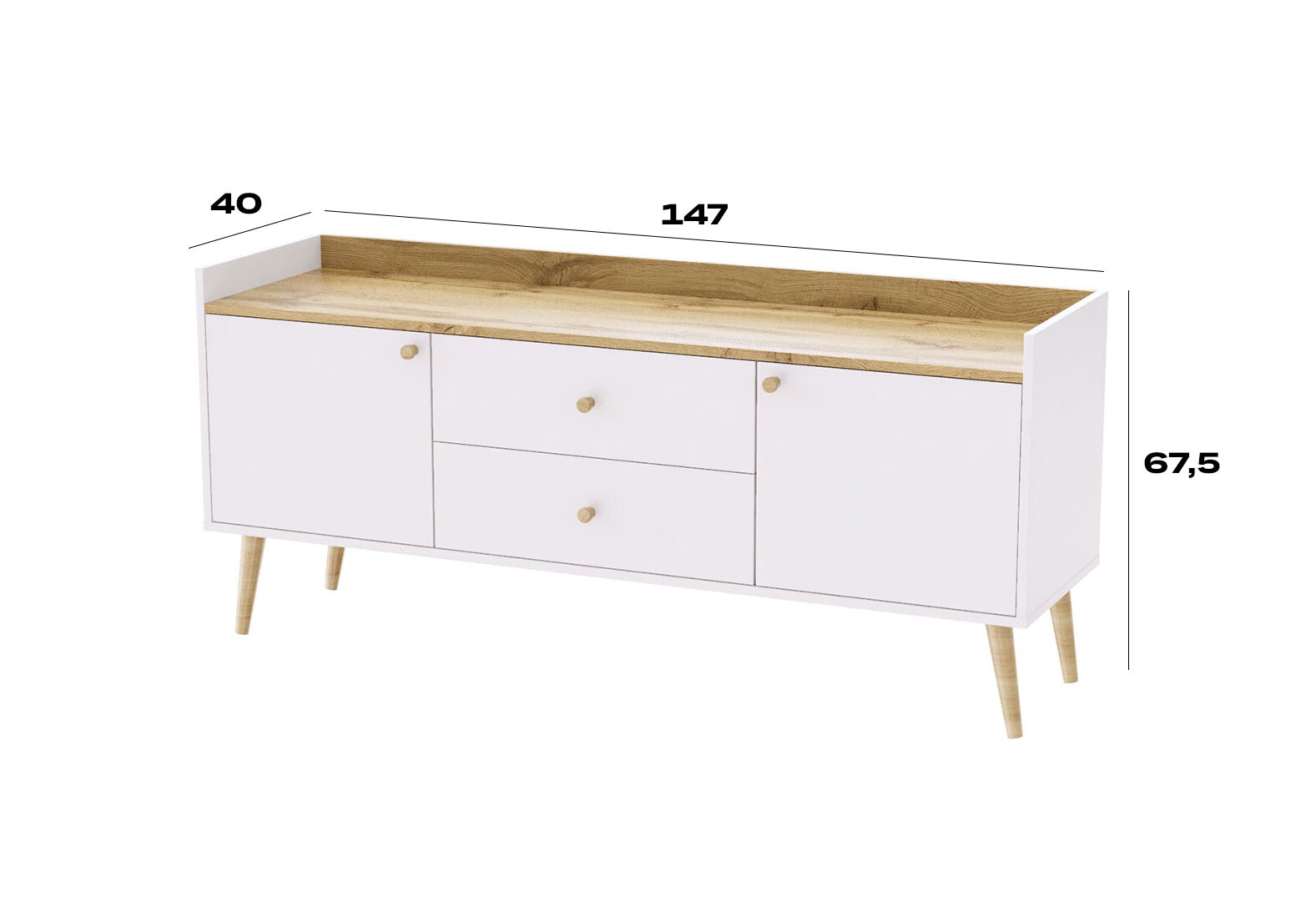 Комод-буфет Art In Head Asgard / Асгард с 2 ящиками и 2 дверками 147 см, белый бриллиант / дуб золотой крафт
