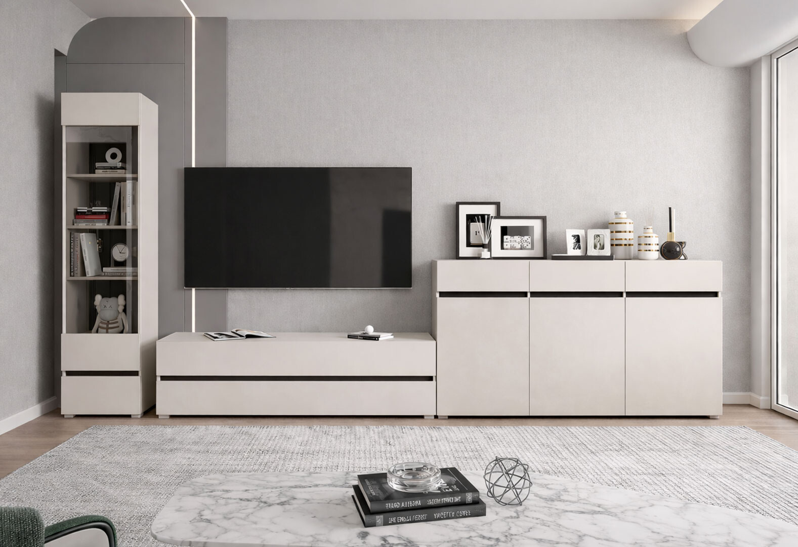 Комод Gerbor холдинг Лондон KOM3D3S с 3 ящиками и дверцами 150 см, кашемир / антрацит