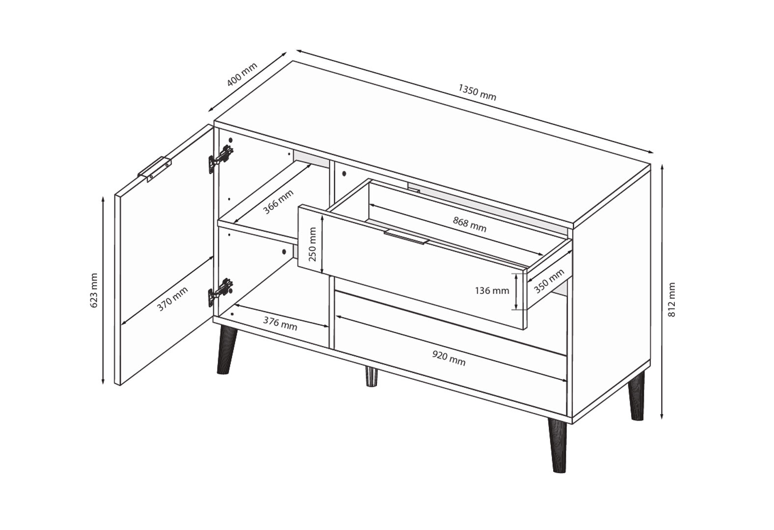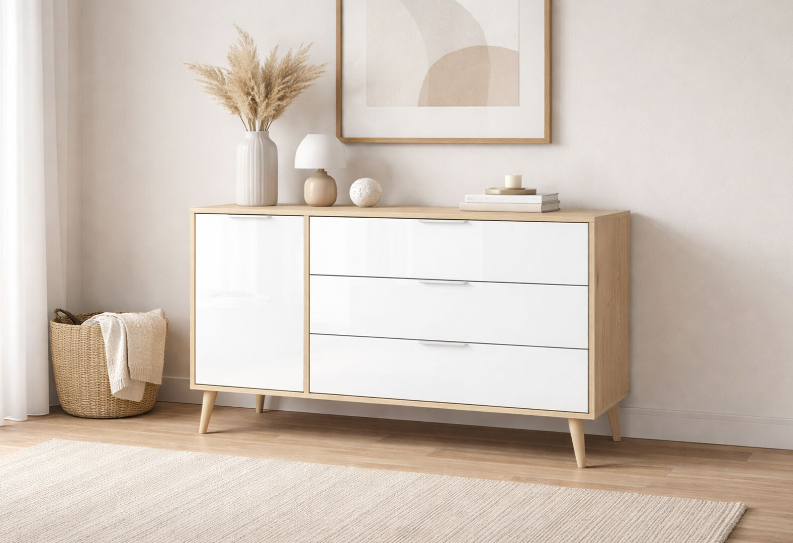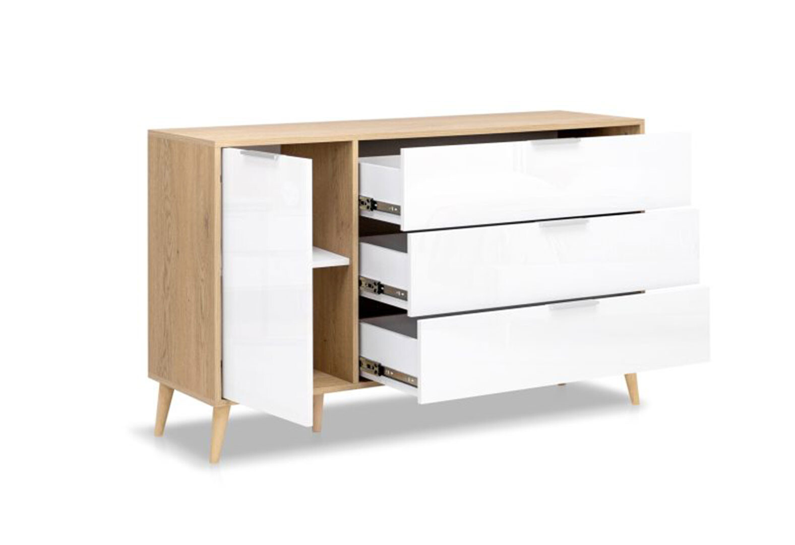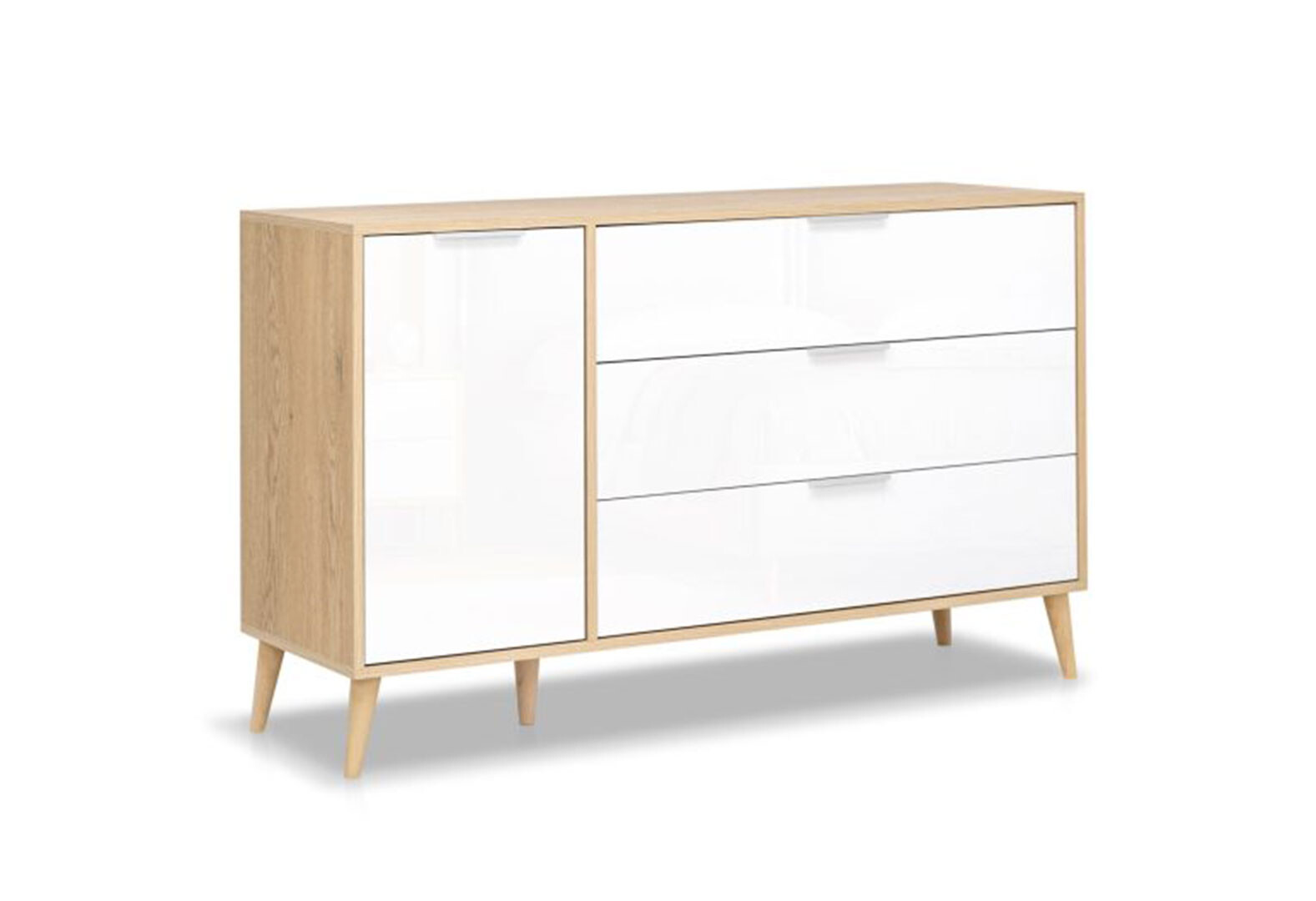Комод МироМарк Оливия 1 дверка и 3 ящика 135 см, глянец белый / дуб кремона
