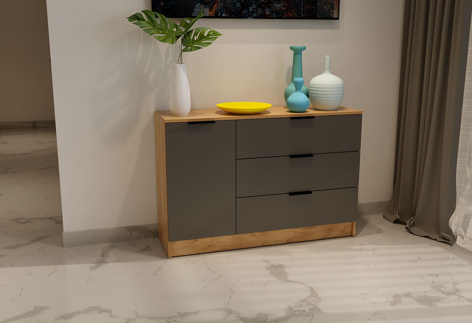 Комод Viant Сити 3 на 3 ящика и 1 дверку 120 см, дуб тахо / антрацит