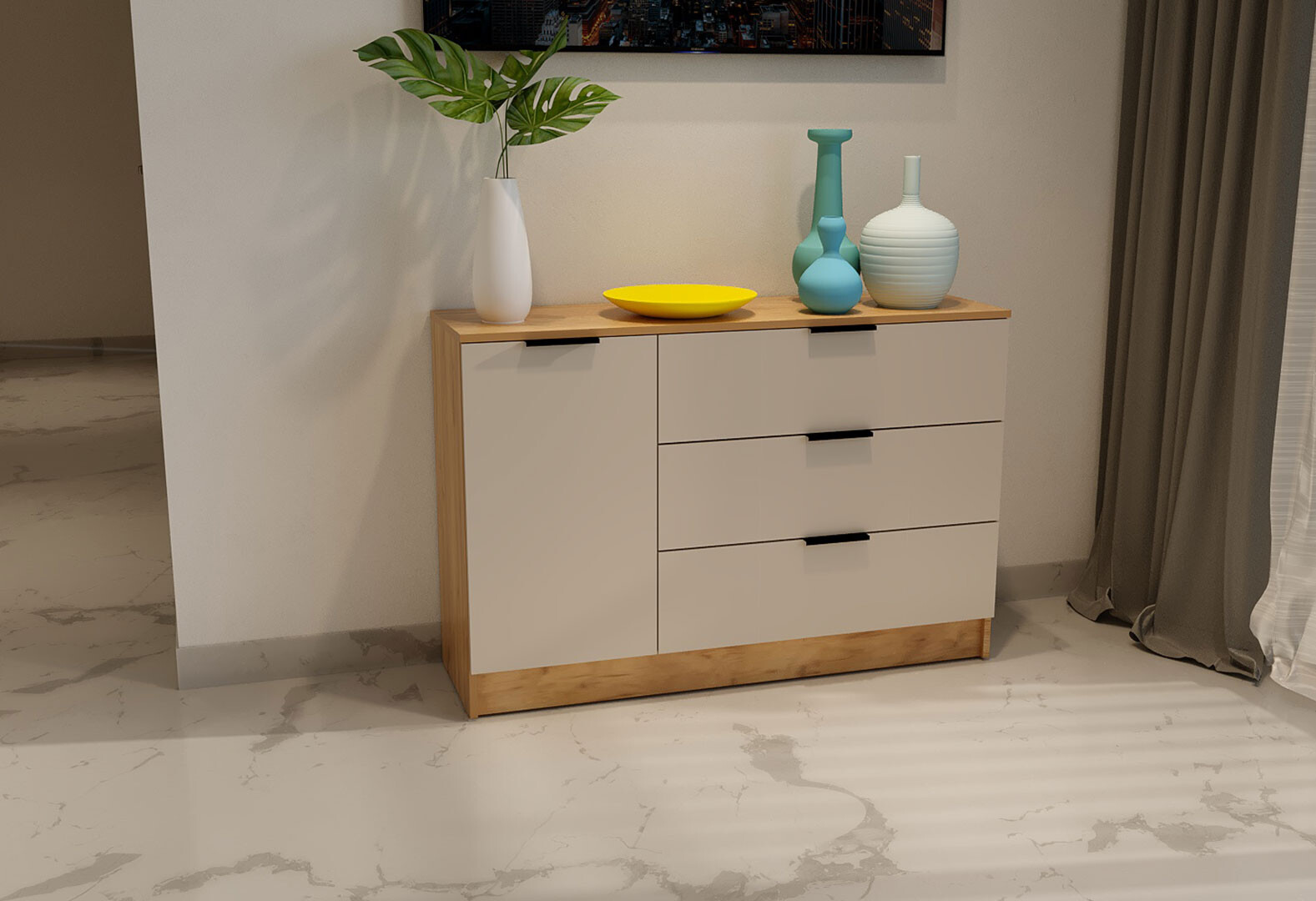 Комод Viant Сити 3 на 3 ящика и 1 дверку 120 см, дуб тахо / кашемир