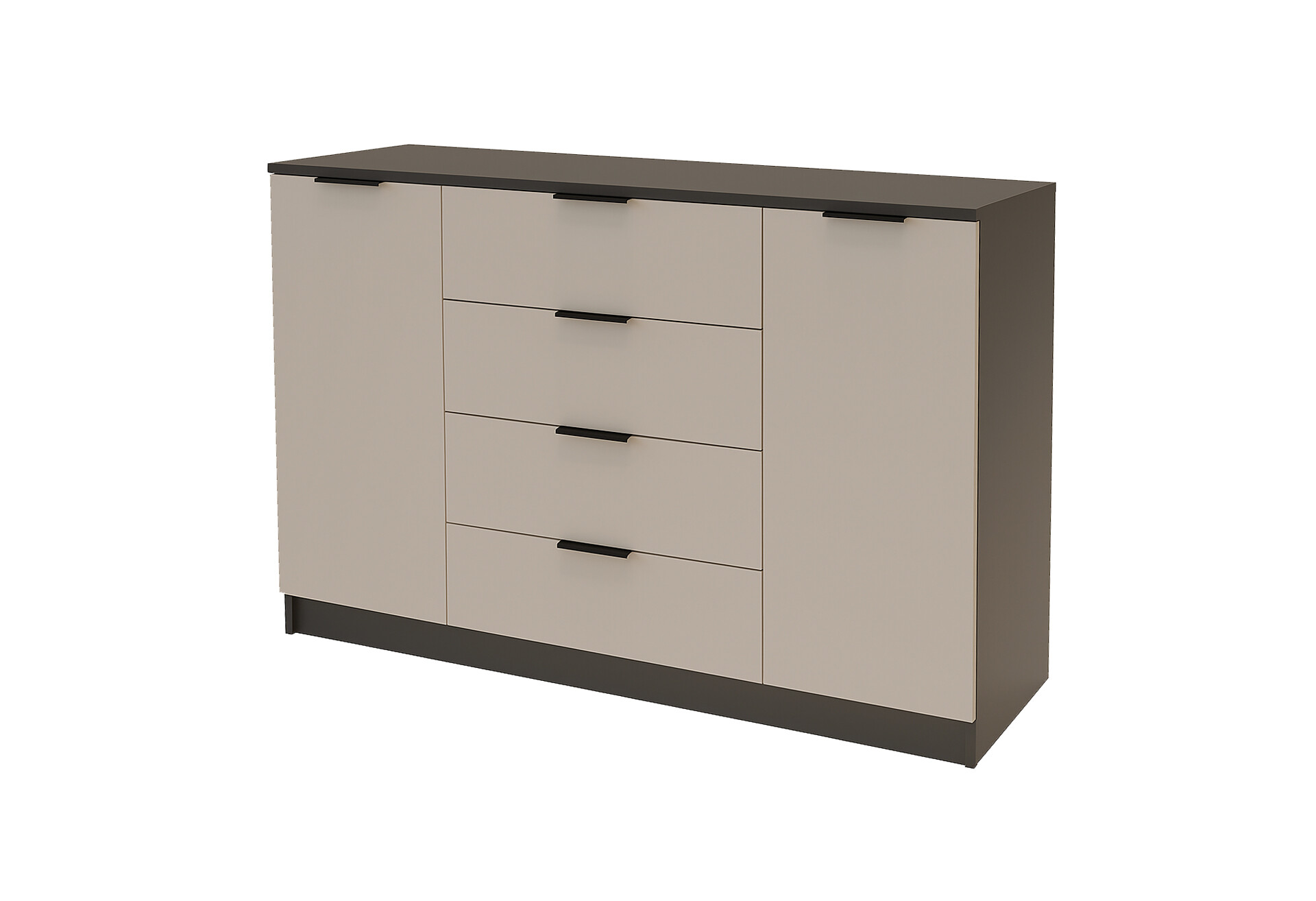 Комод Viant Сити 4 на 3 ящика и 2 дверками 130 см, антрацит / кашемир
