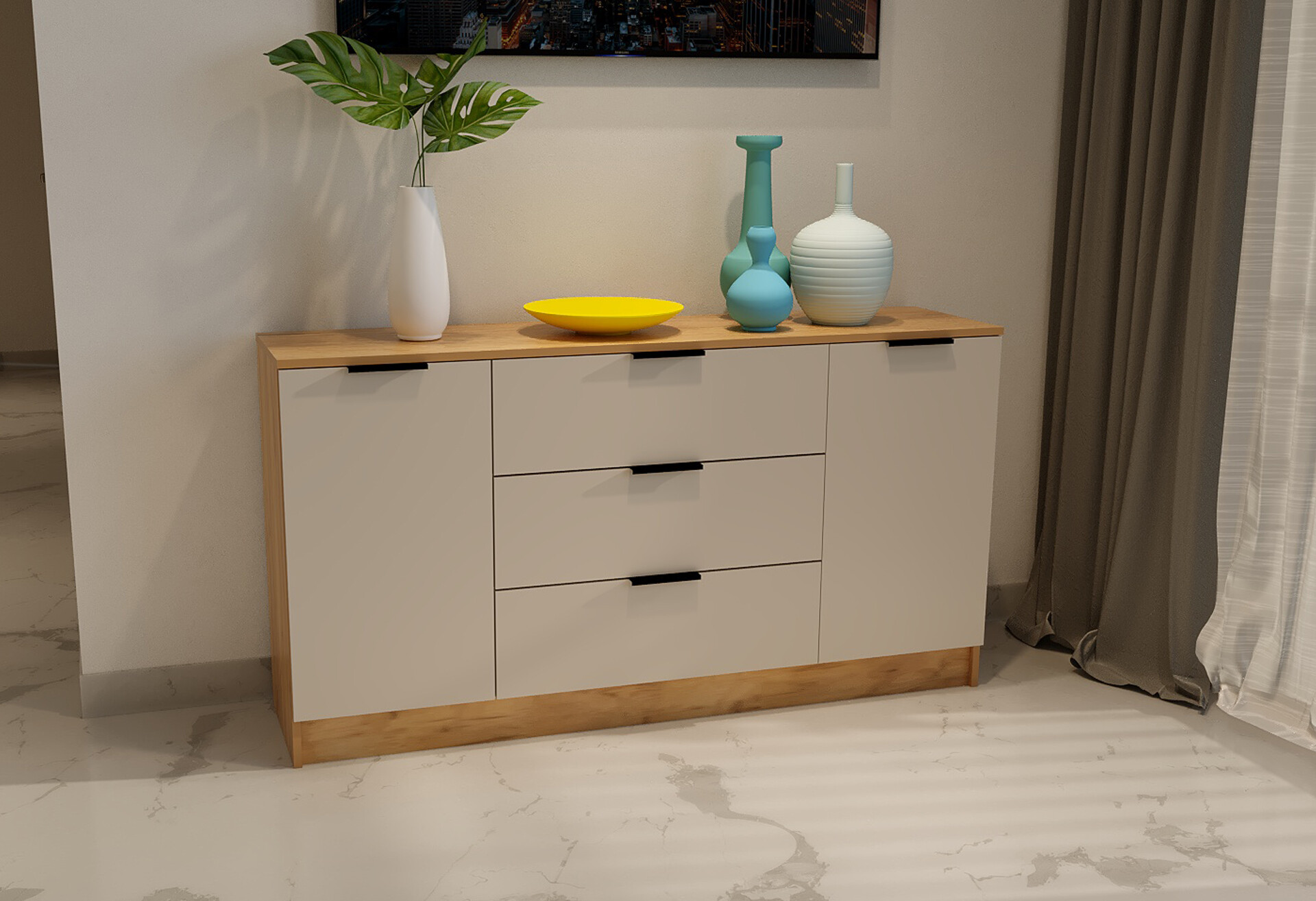 Комод Viant Сити 4 на 3 ящика и 2 дверками 150 см, дуб тахо / кашемир