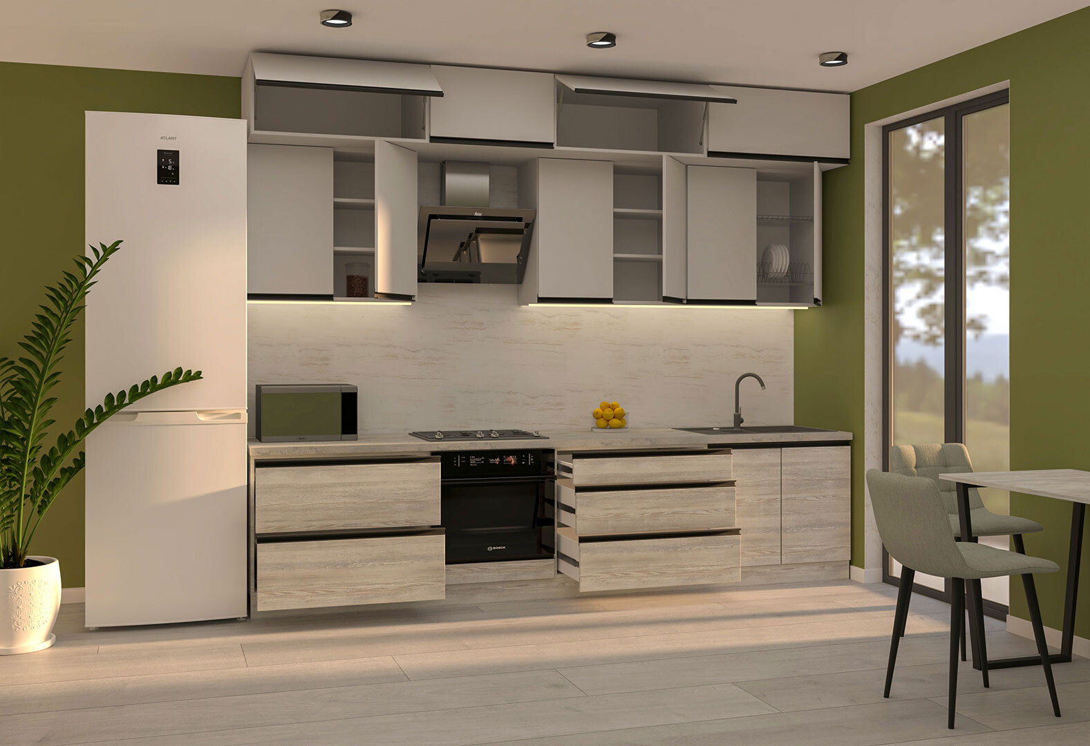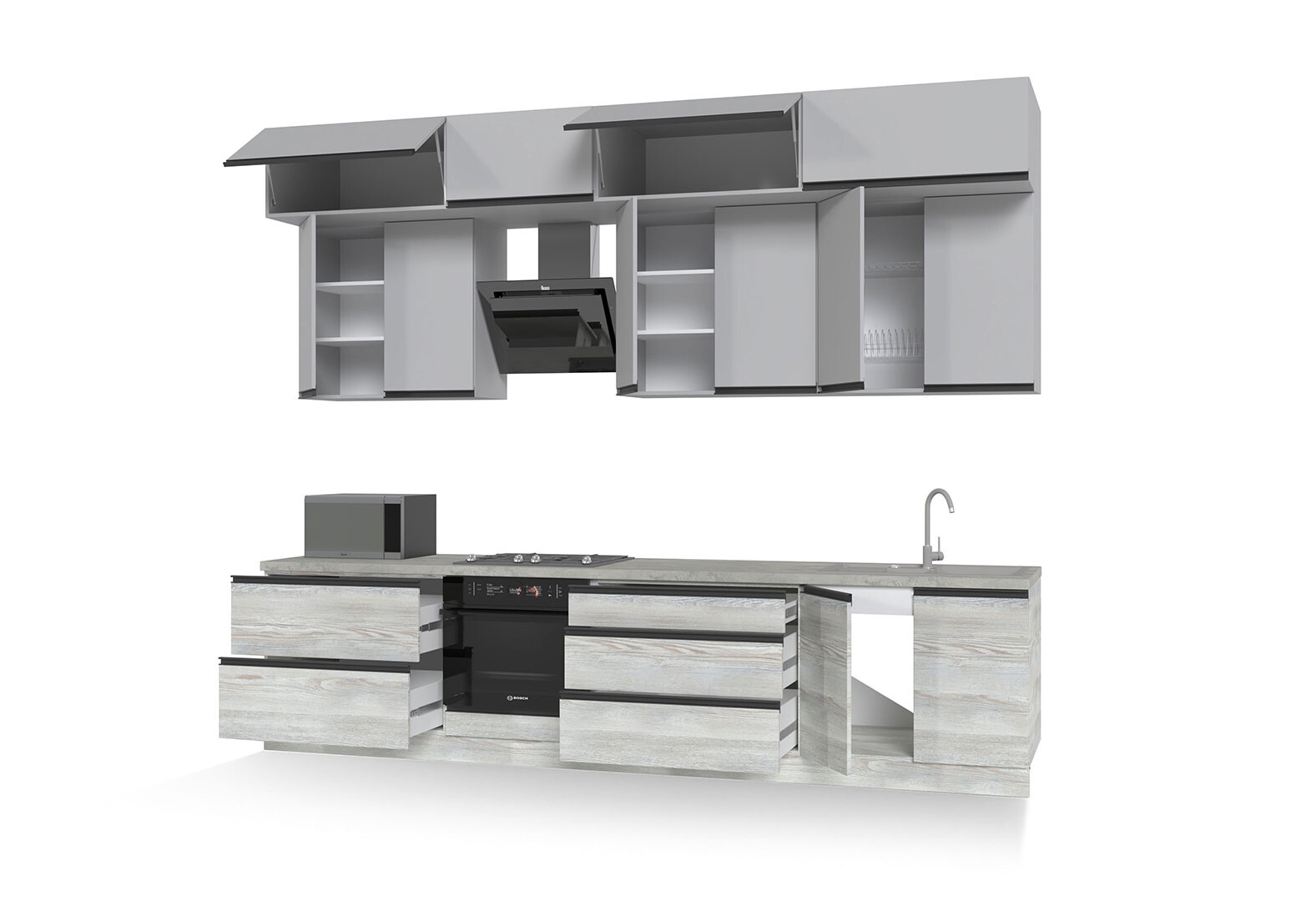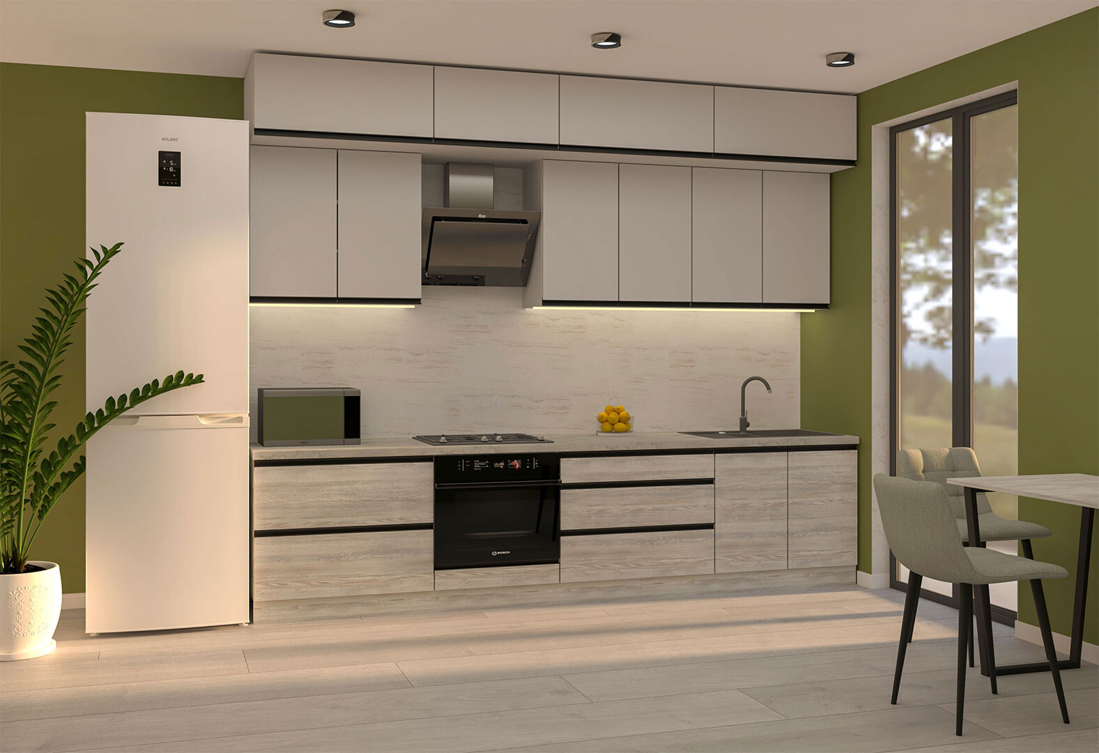 - Кухня Вип-мастер ГаМа / GaMa Люкс 300 см, сосна натти / серый