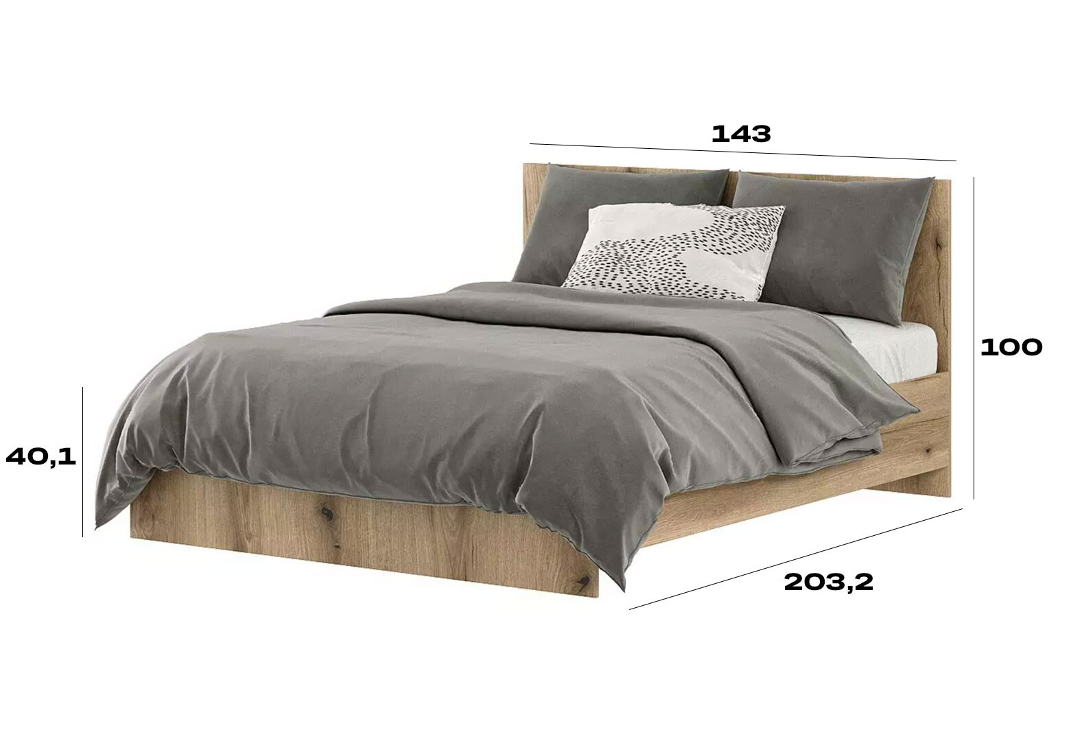 Кровать Art In Head Light / Лайт 140х200 см, дуб эвок