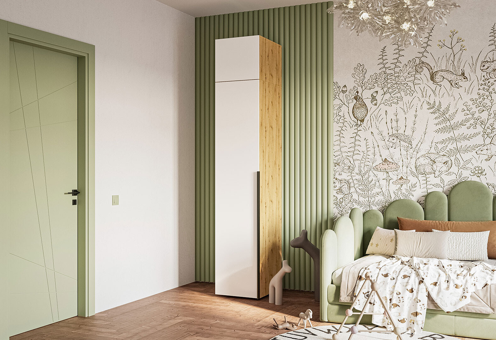 - Пенал Garant Соло 1D_Sh с антресолью и полками 45 см, дуб артизан / нимфея альба