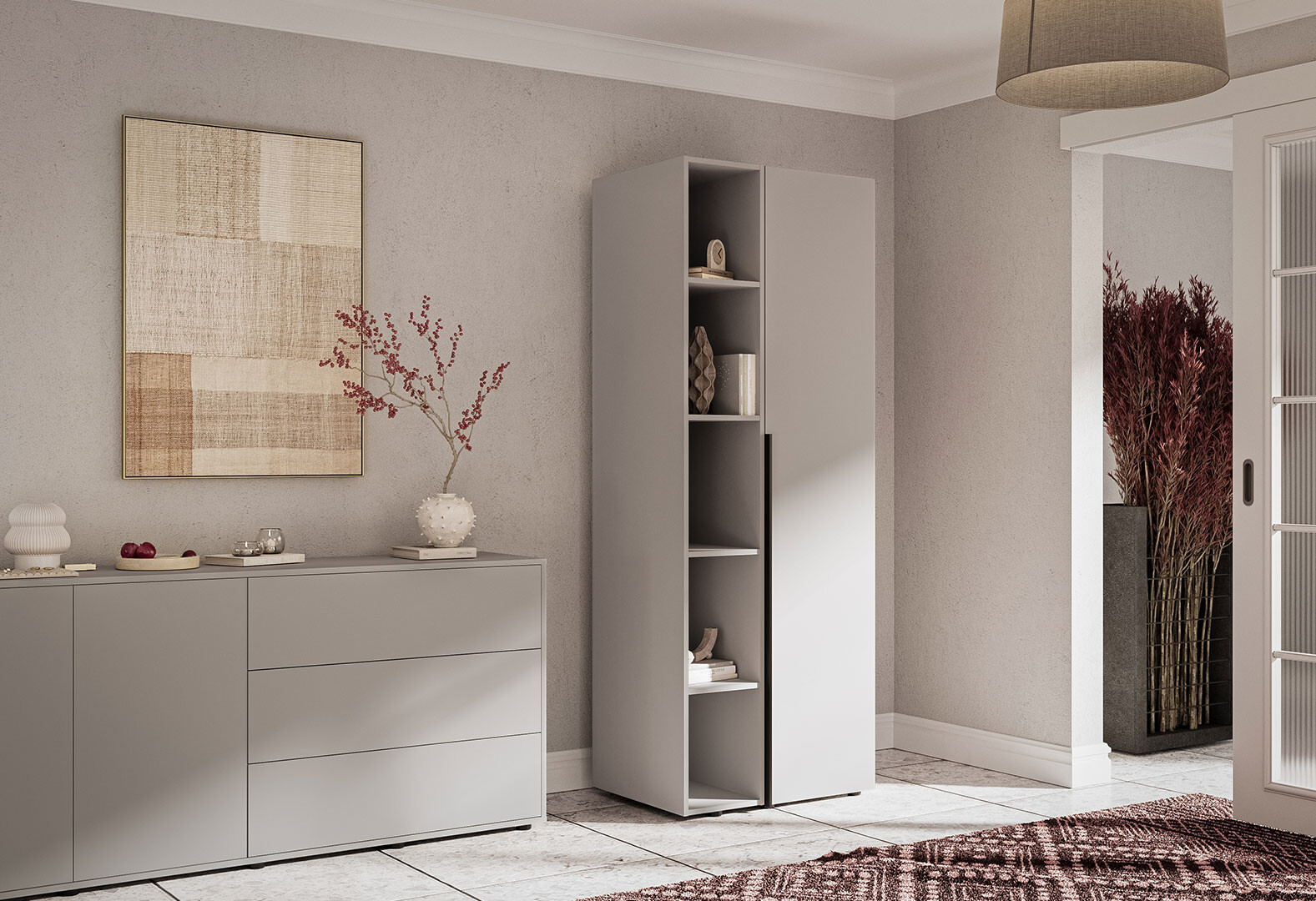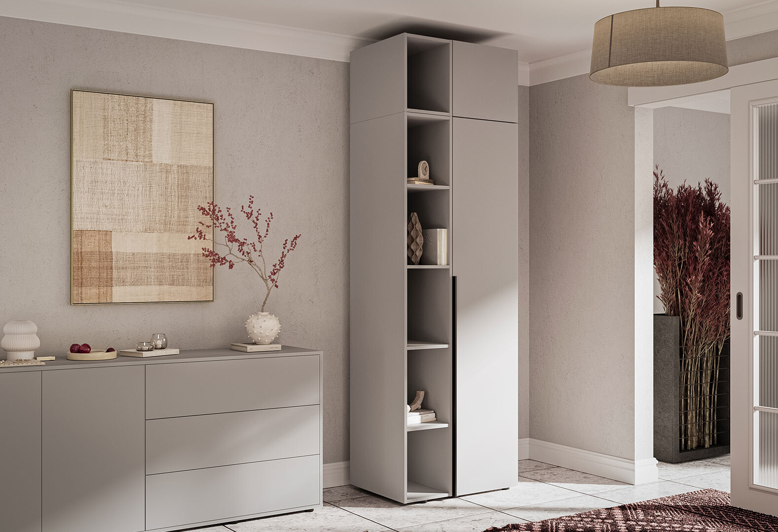 - Пенал Garant Соло 1D_Sh с полками 45 см, серая мышка