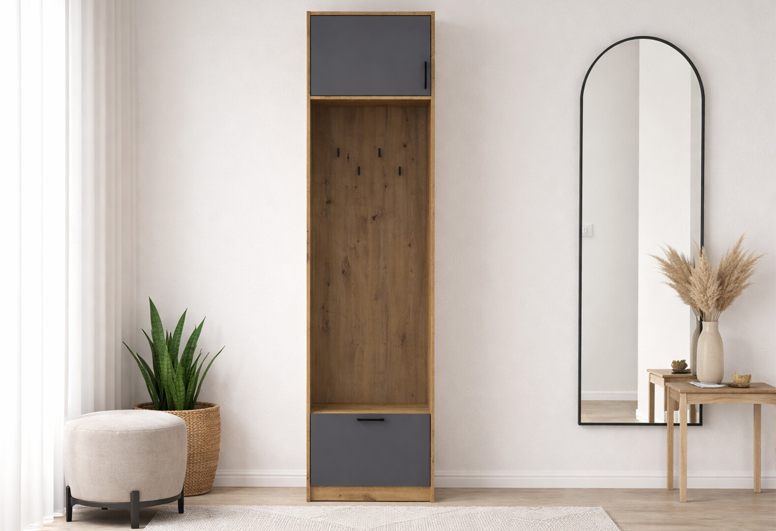 Пенал-вешалка Doros Ронди с антресолей 60 см Дуб Артизан / Графит