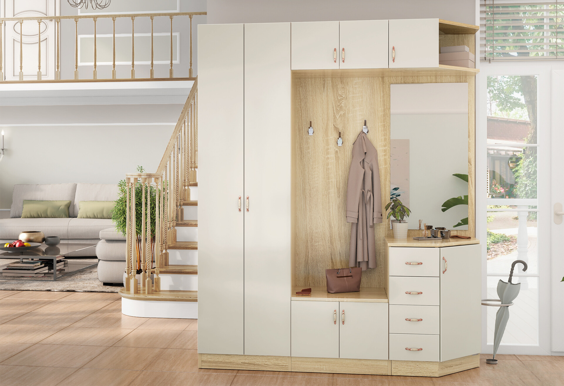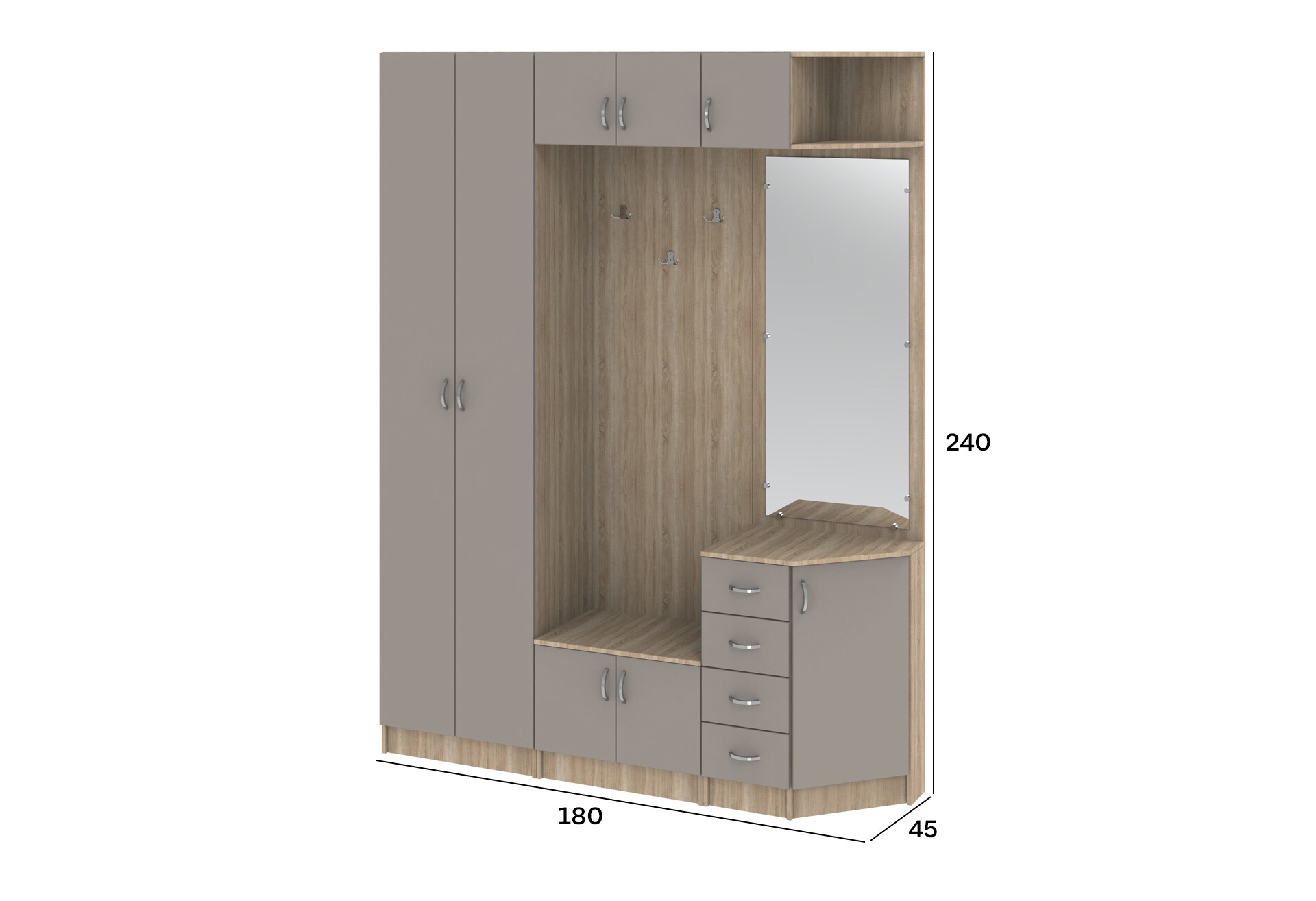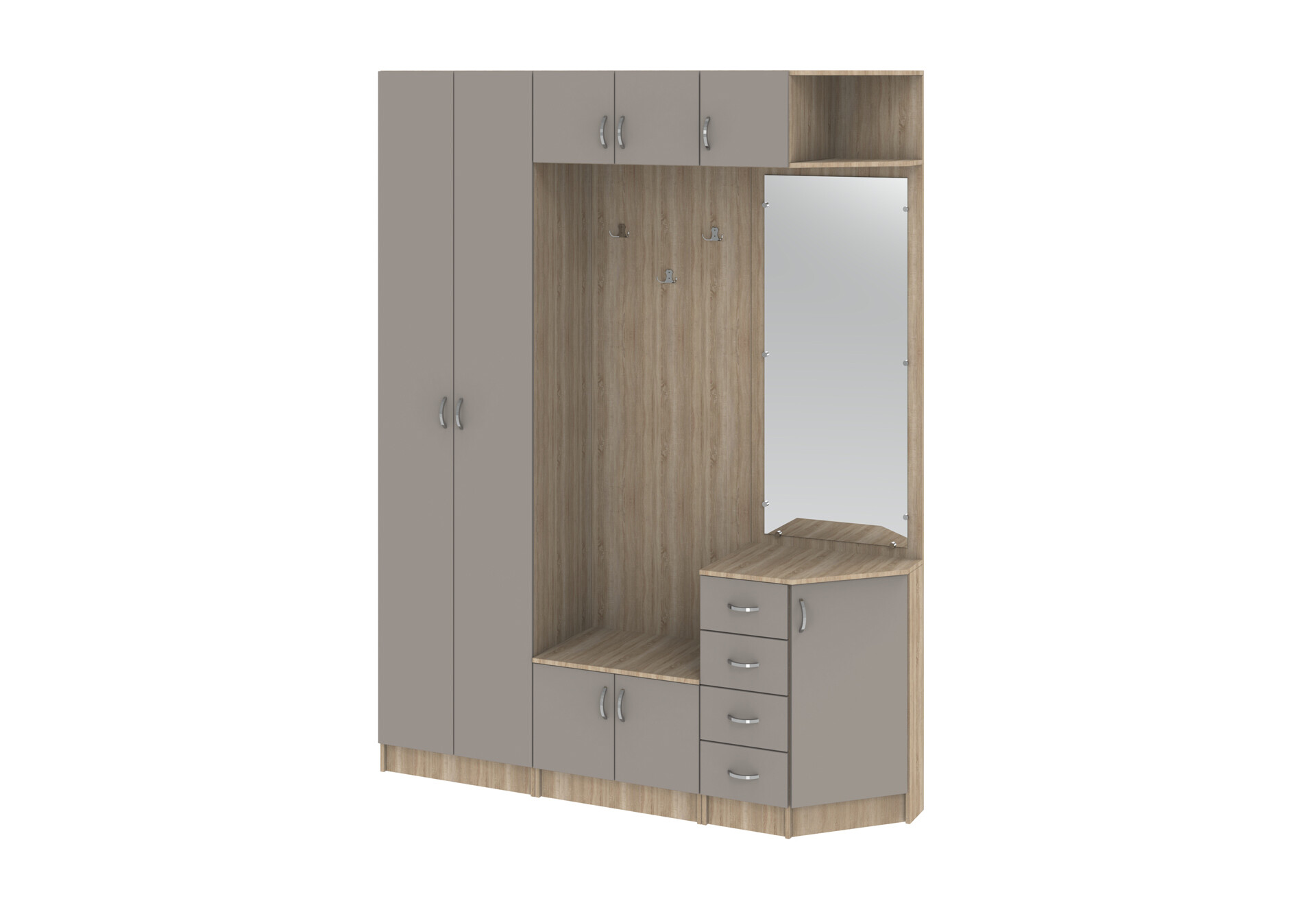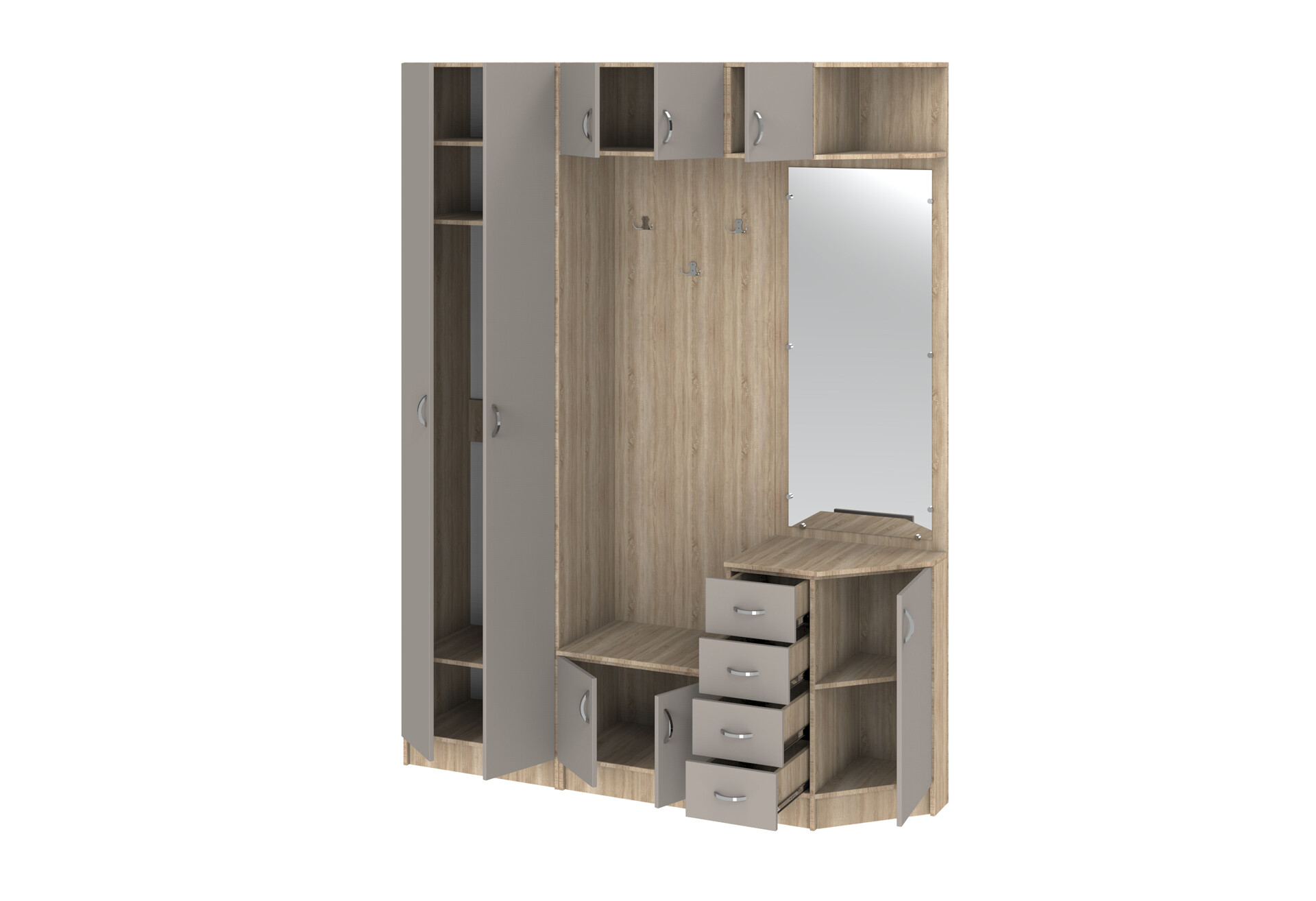 Прихожая Киевский стандарт Классика Д 8-дверный правый с ящиками 180 см дуб сонома / кашемир